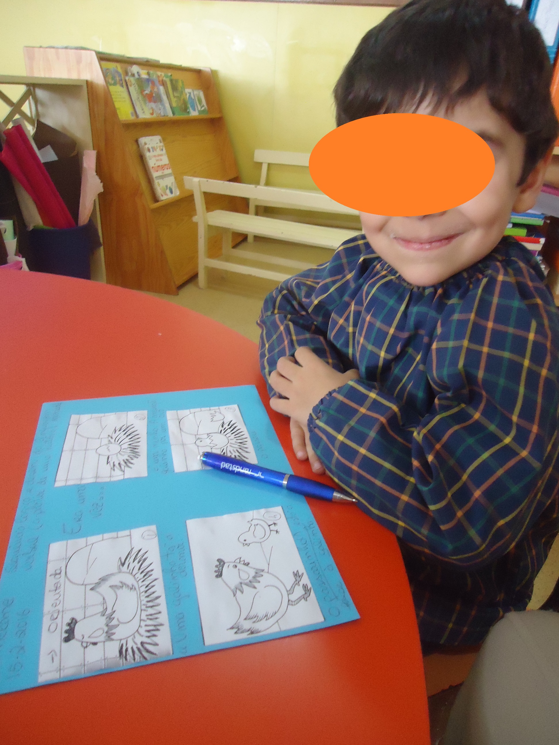 Numa folha branca encontrámos um círculo e a Márcia “pediu” para que desenhássemos as nossas carinhas, depois fizemos uma reflexão e cada um de nós descreveu o que desenhou.