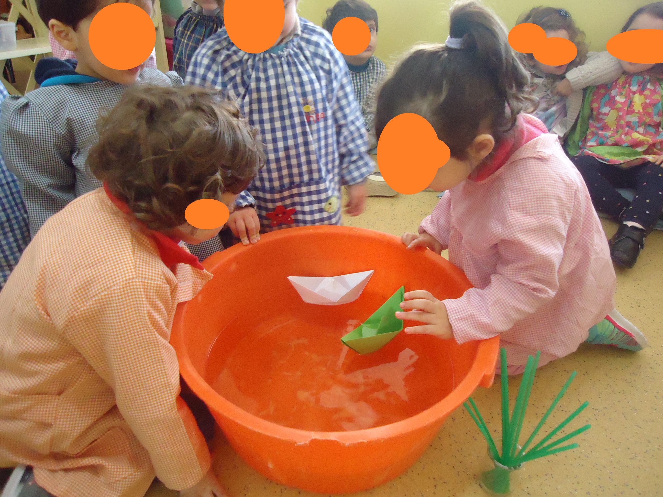 O tempo este mês foi de muita chuva, frio e de muito vento e não esquecemos de marcar o estado do tempo no nosso quadro e falámos das roupas que deveríamos vestir, das atividades que poderíamos concretizar…surgiu a ideia de descobrirmos como é que os barcos navegavam?! As respostas foram diversas mas para termos a certeza pusemos mãos à obra, a Márcia trouxe para a sala uma bacia com água, umas palhinhas e dois barcos feitos de papel e um de plástico.