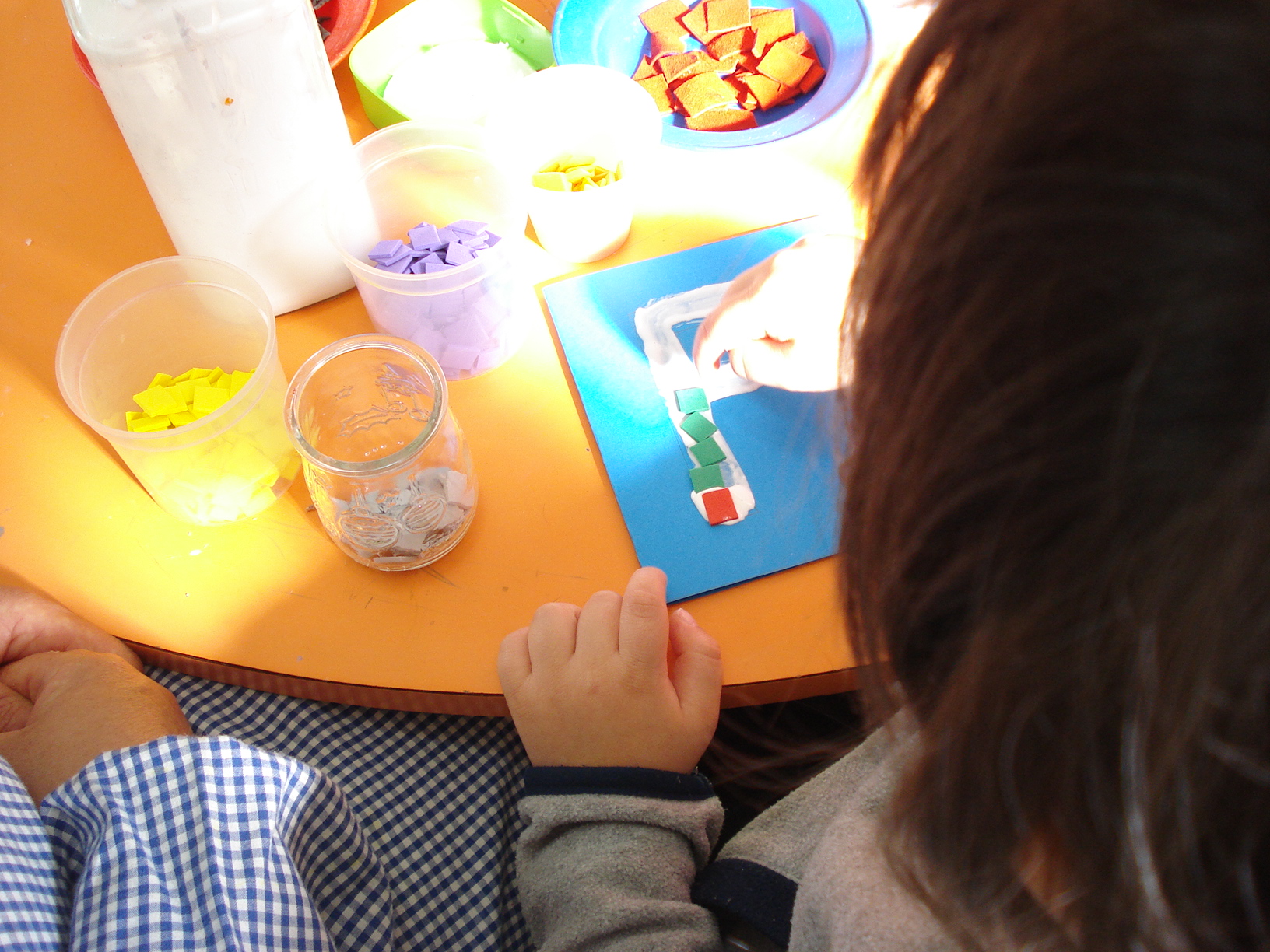 Cá estamos de novo para vos contarmos as novidades deste mês de março. Como sabem este mês está cheio de datas e comemorações importantes. Como somos nós a enfeitar o corredor com a primavera, começamos por construir alguns adereços com vista á decoração do mesmo, fizemos pequenos vasos com flores feitas de forminhas de papel frisado nas quais pintamos flores, fizemos pequenas fadas com papel crepe.