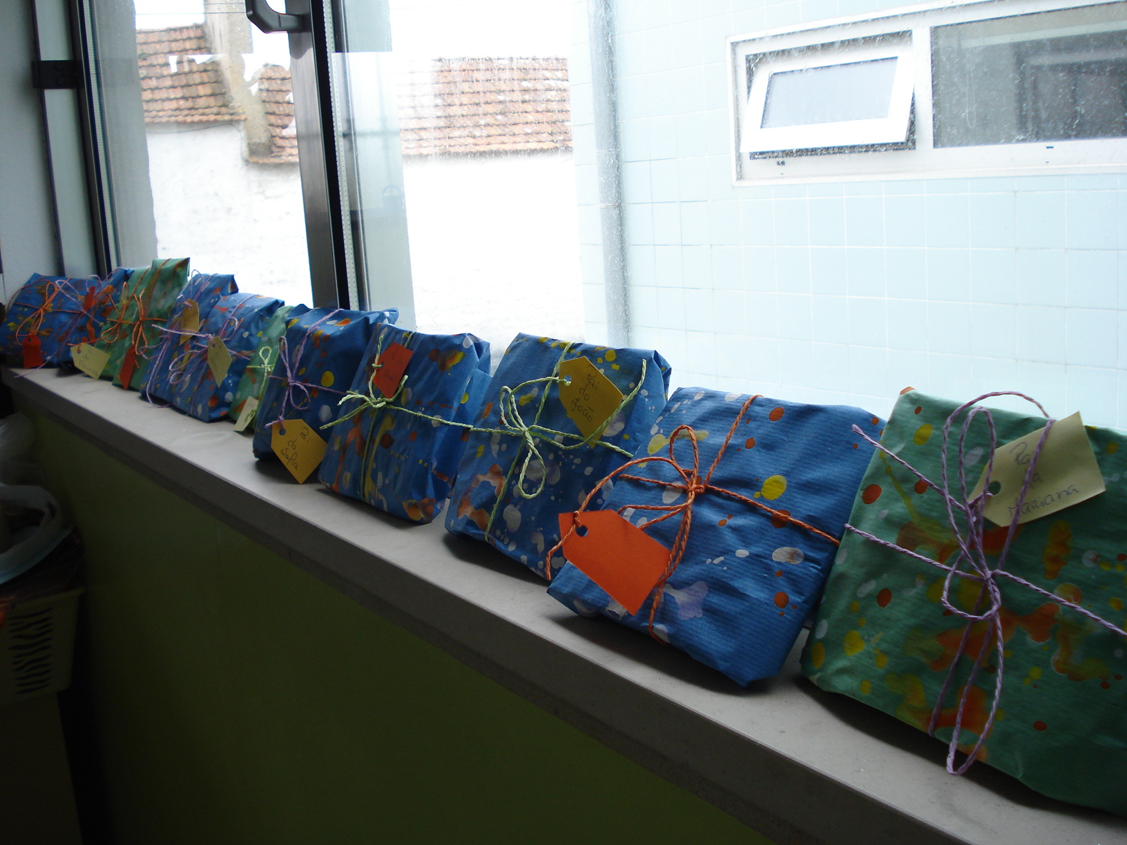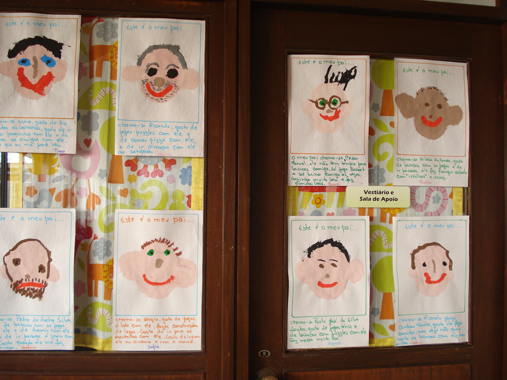 Pintamos o rosto dos nossos pais e dissemos o que gostamos de fazer com ele, colocamos esses retratos nas janelas da nossa sala, esperamos que tenham gostado das surpresas.