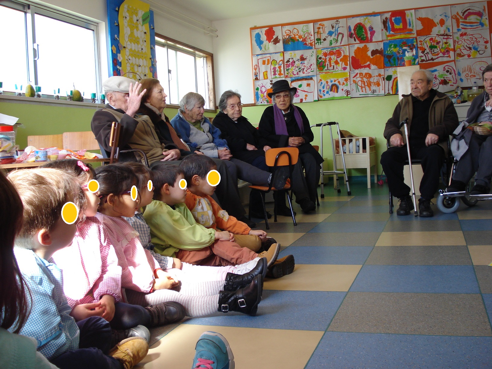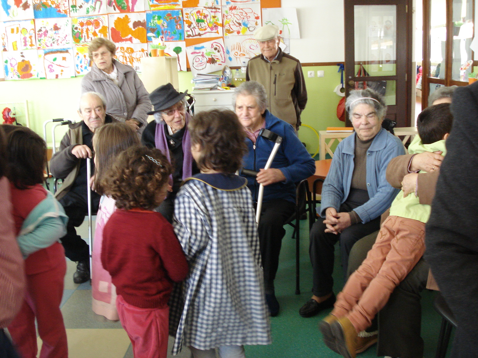 Recebemos a visita dos Idosos do Lar Amélia Madaíl, que nos vieram explicar o Calendário agrícola, trouxeram-nos também desenhos sobre o tema para pintarmos, eles ajudaram-nos nesta tarefa, conversamos e foi muito bom podermos trocar experiências, no final cantámos muitas canções. Despedimo-nos muito satisfeitos com este momento, que esperamos se repita. Foi um prazer recebe-los.