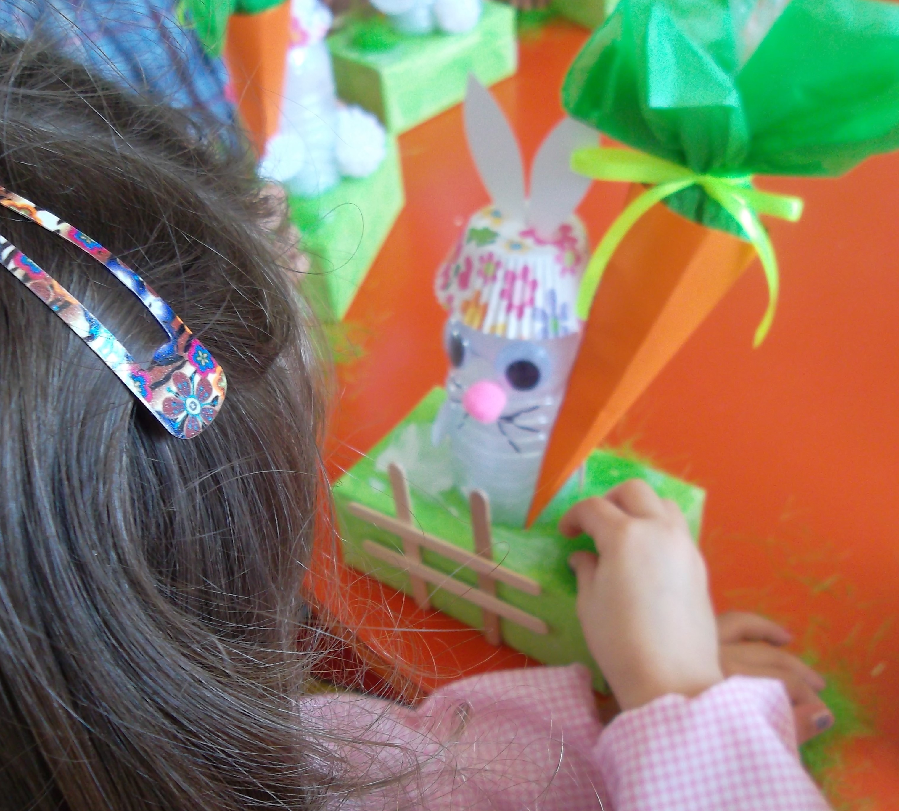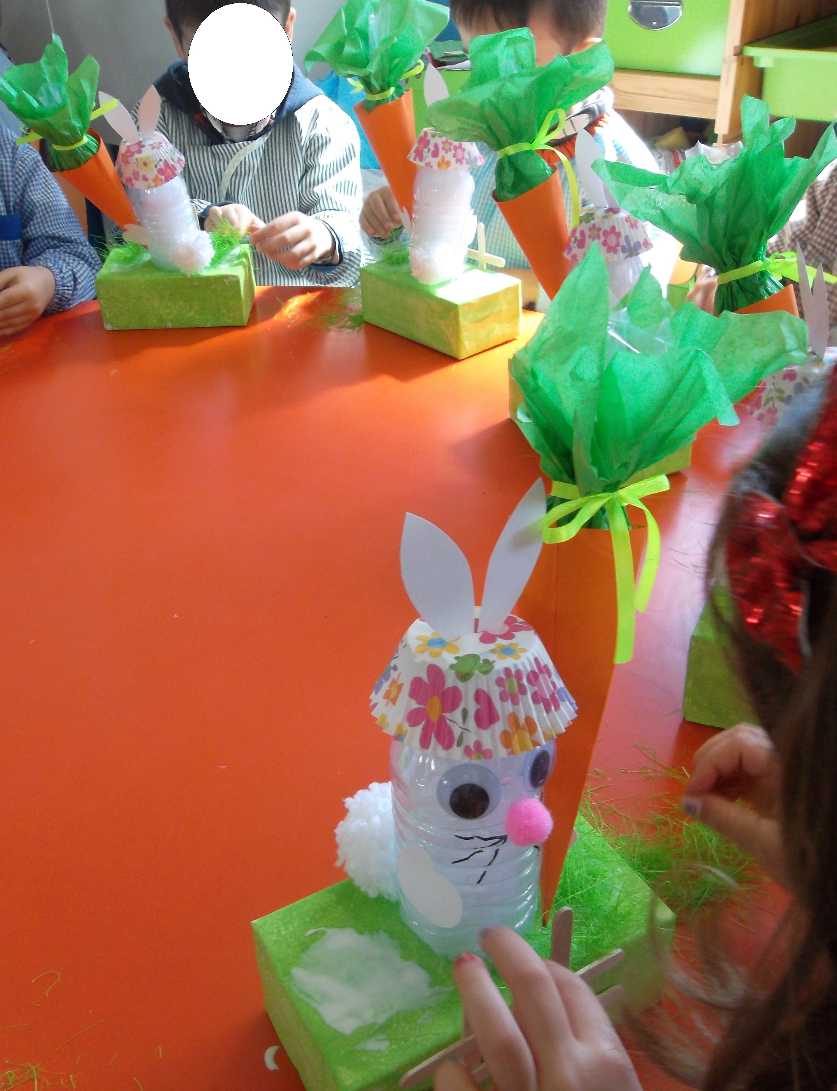 Com a Páscoa a aproximar-se e como todos os anos fizemos uma prendinha para partilharmos as amêndoas com a nossa família. Seguindo o tema do coelhinho da Páscoa utilizámos alguns materiais recicláveis como garrafinhas de plástico e pacotes de leite construímos o jardim do coelhinho.