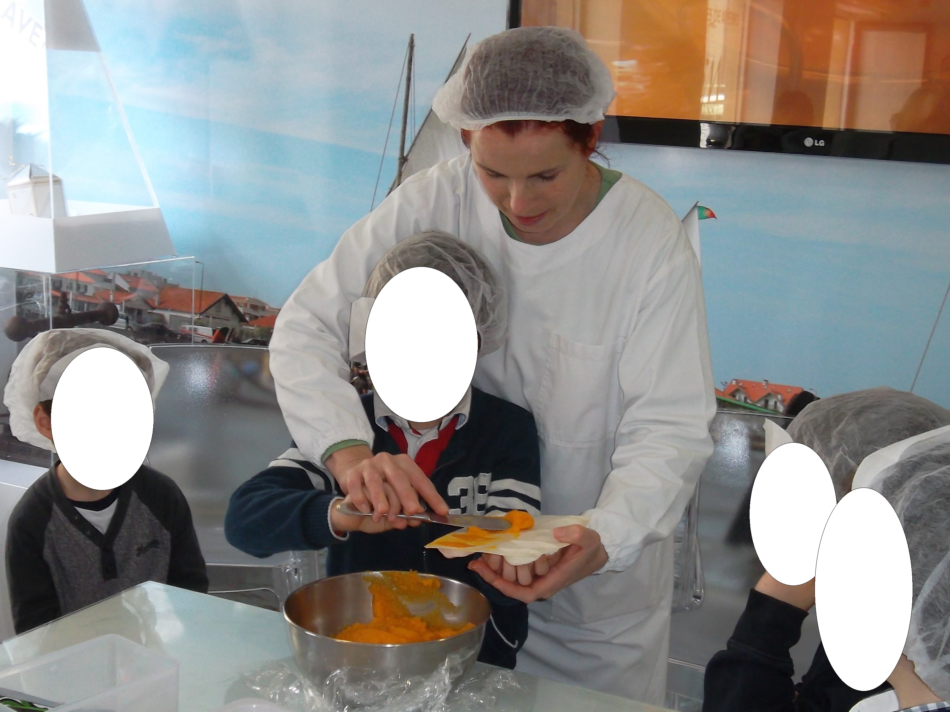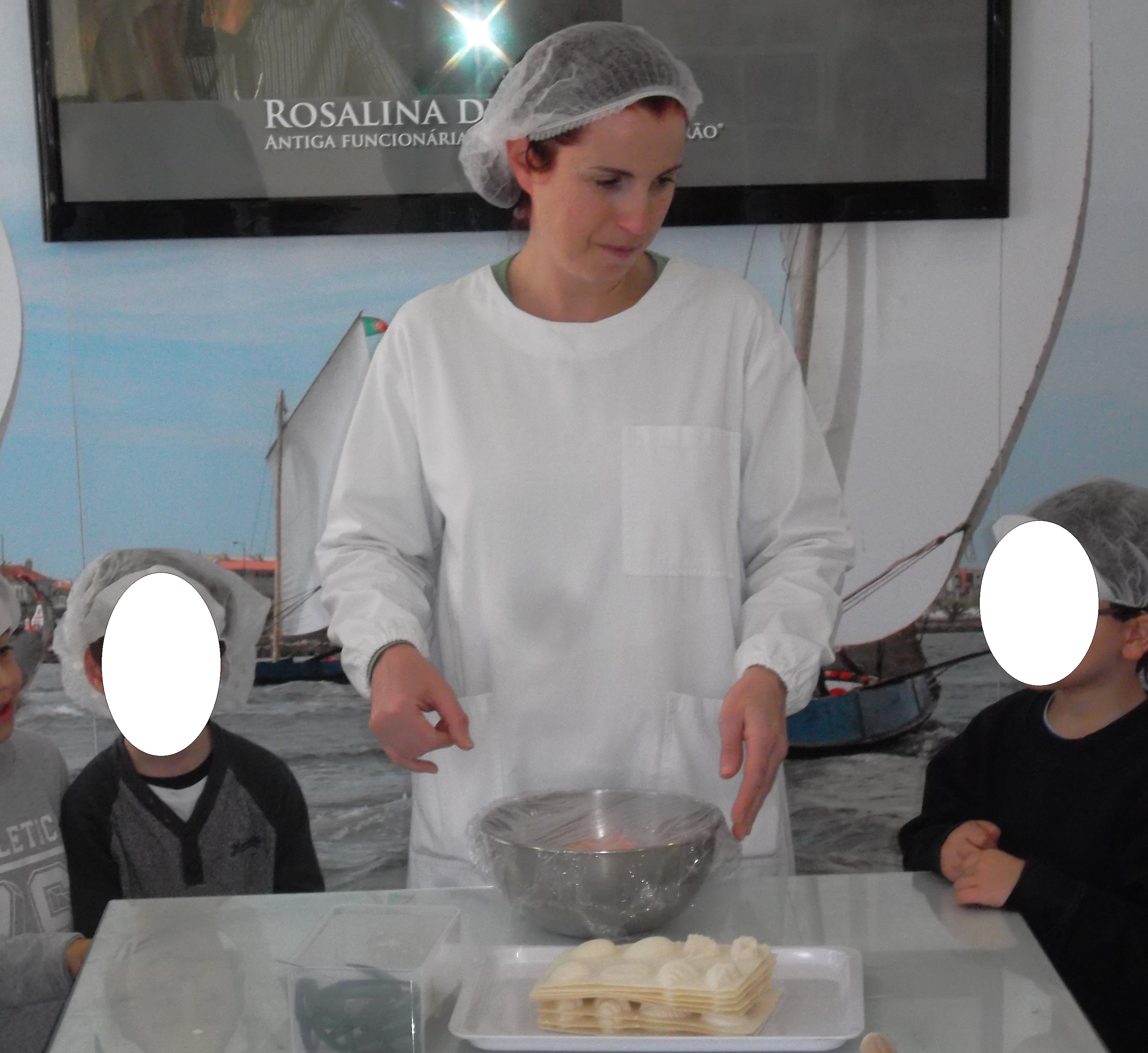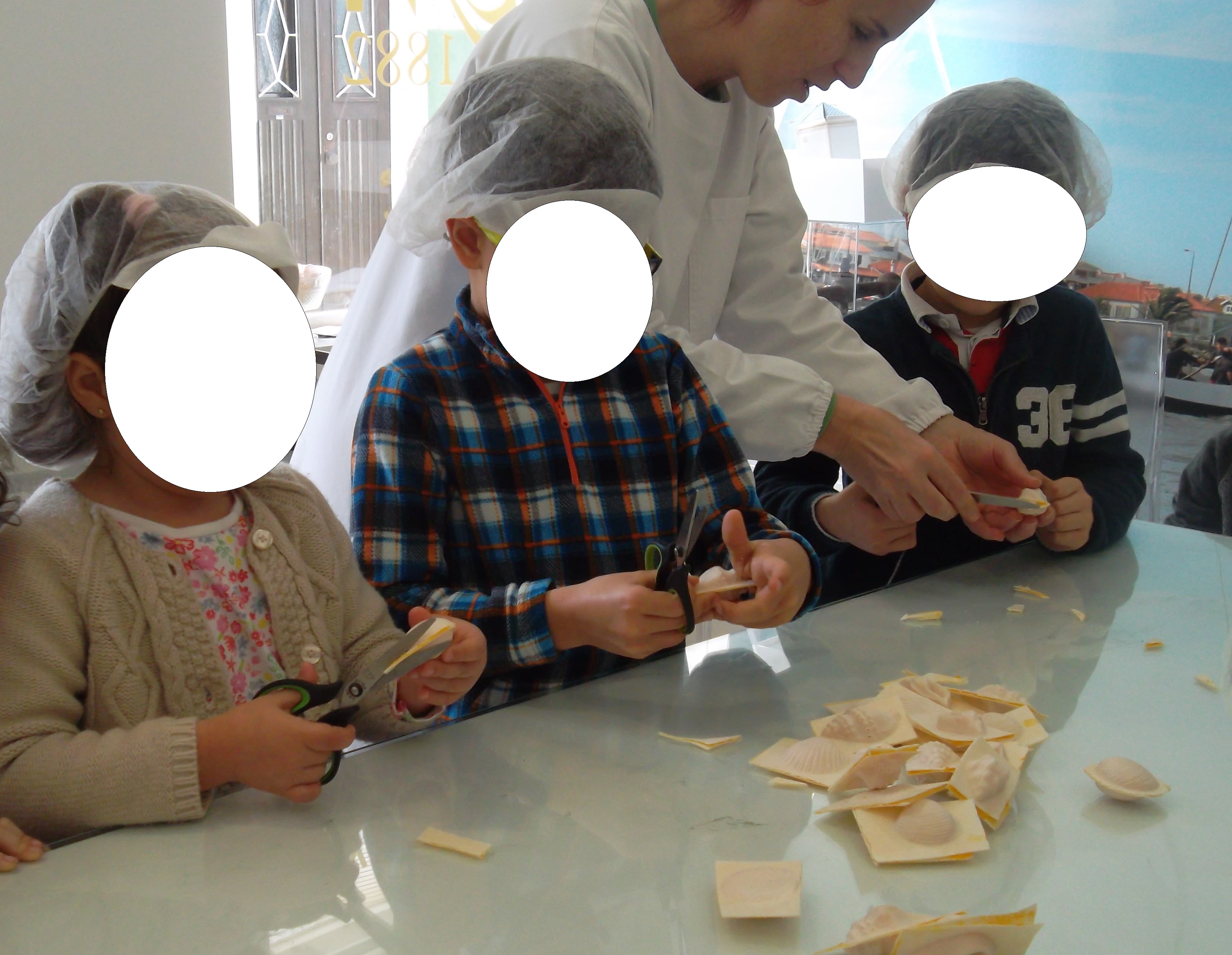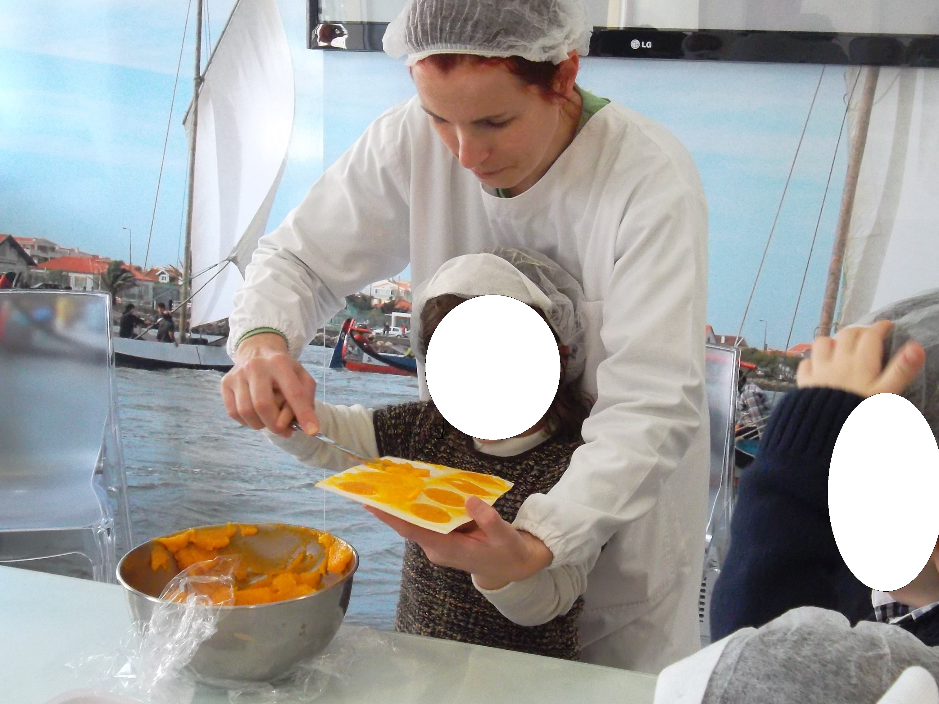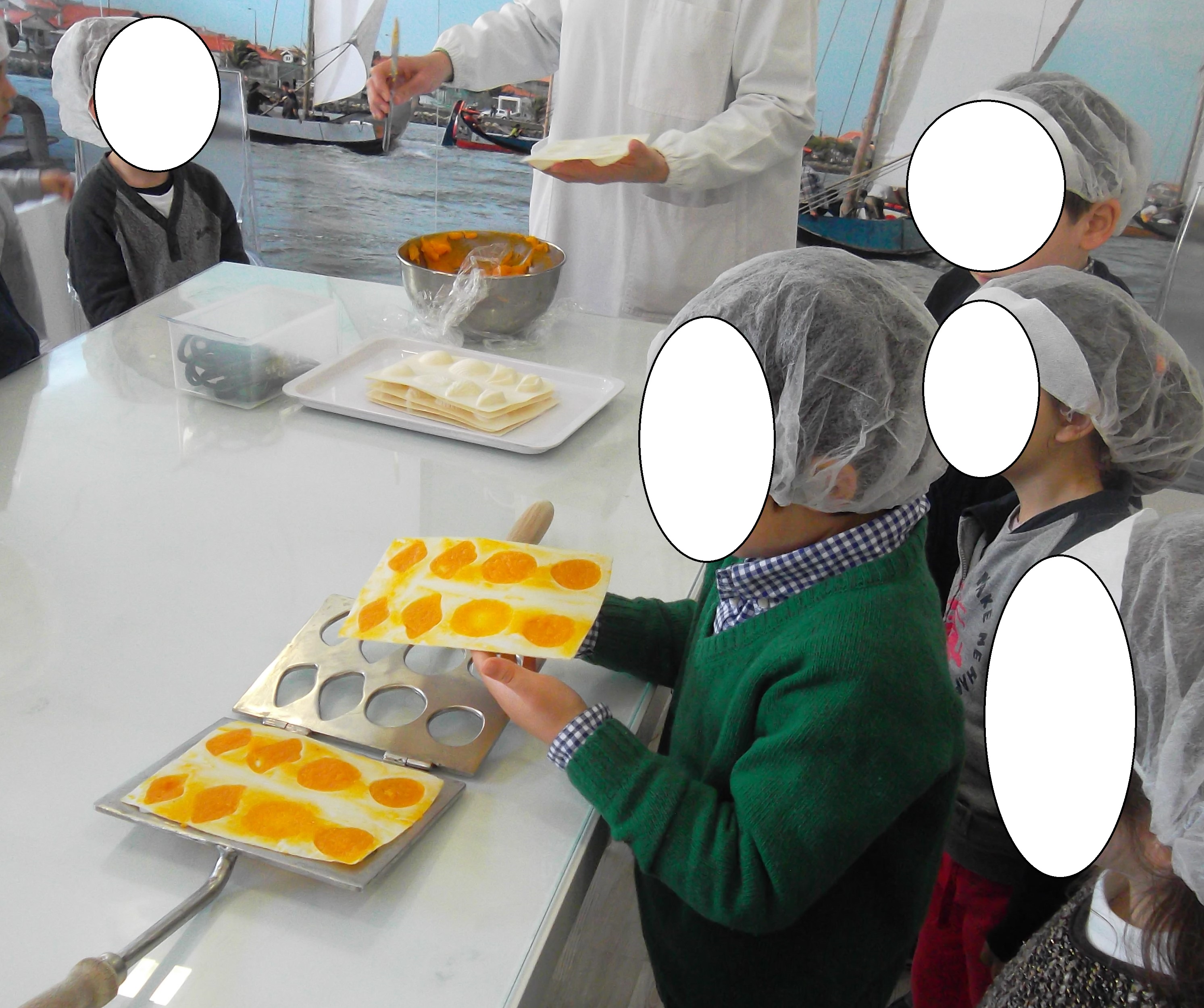 Cada criança ajudou a confecionar ovos-moles e aprendeu todos os passos importantes desde o enchimento das formas até ao corte dos ovos-moles.