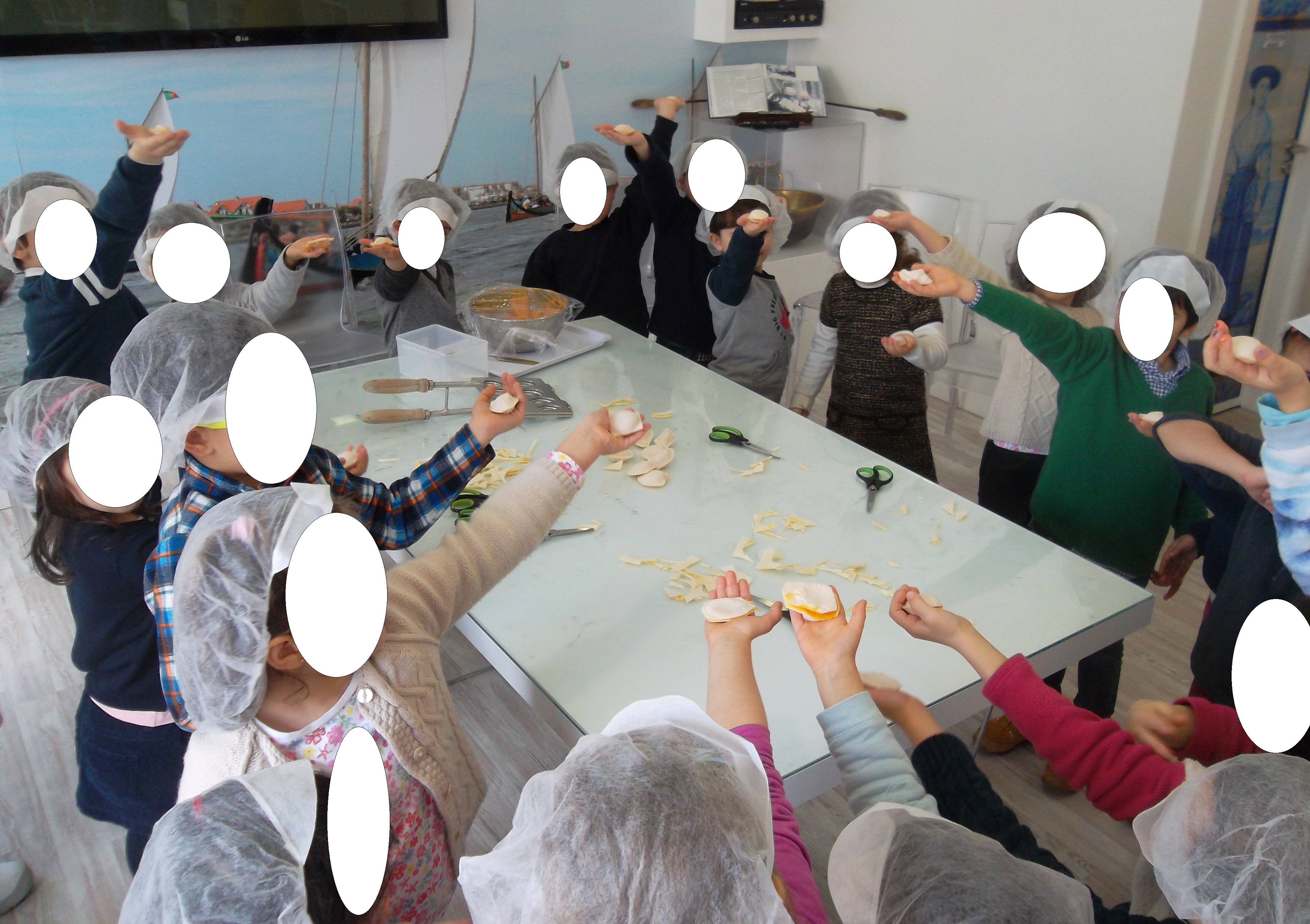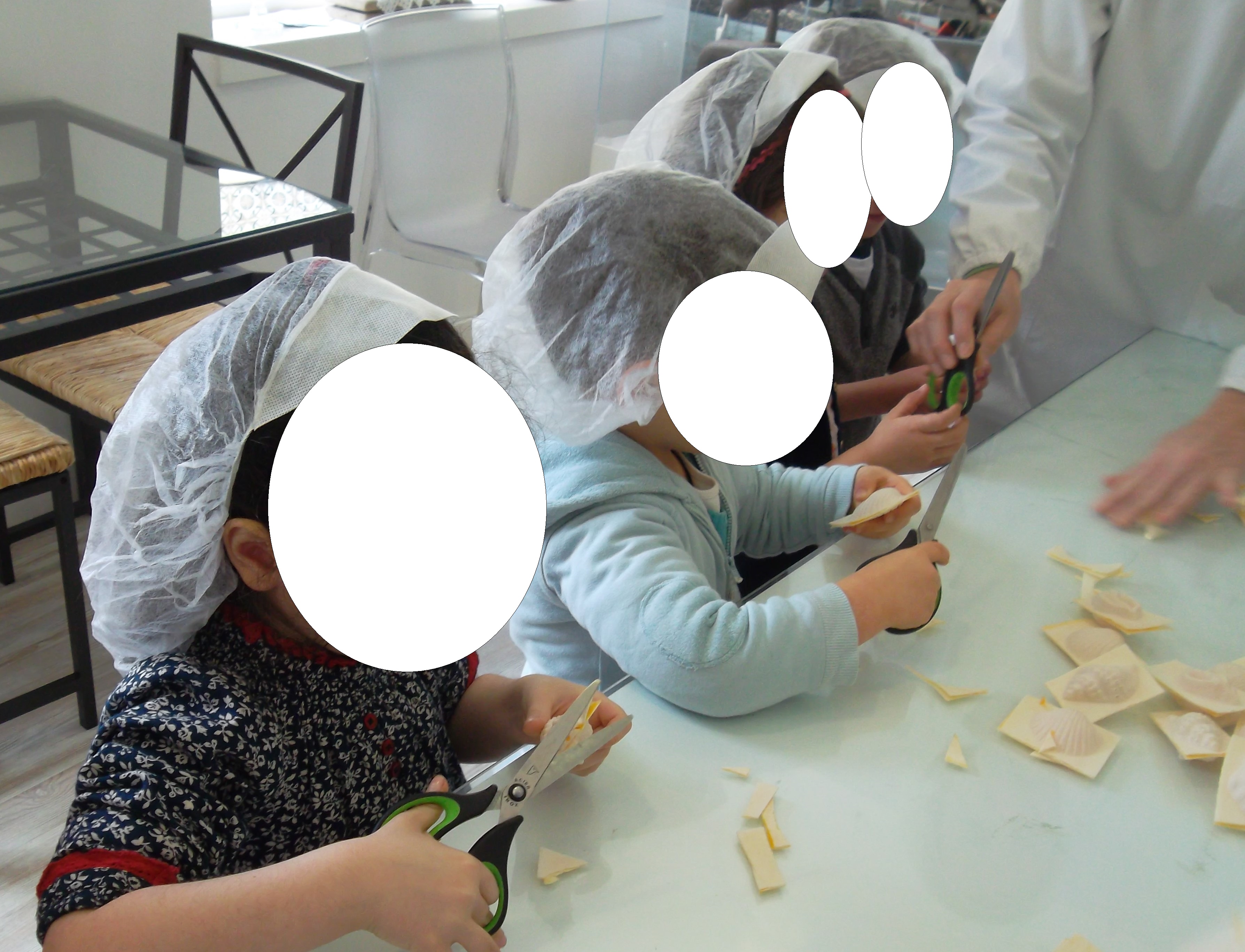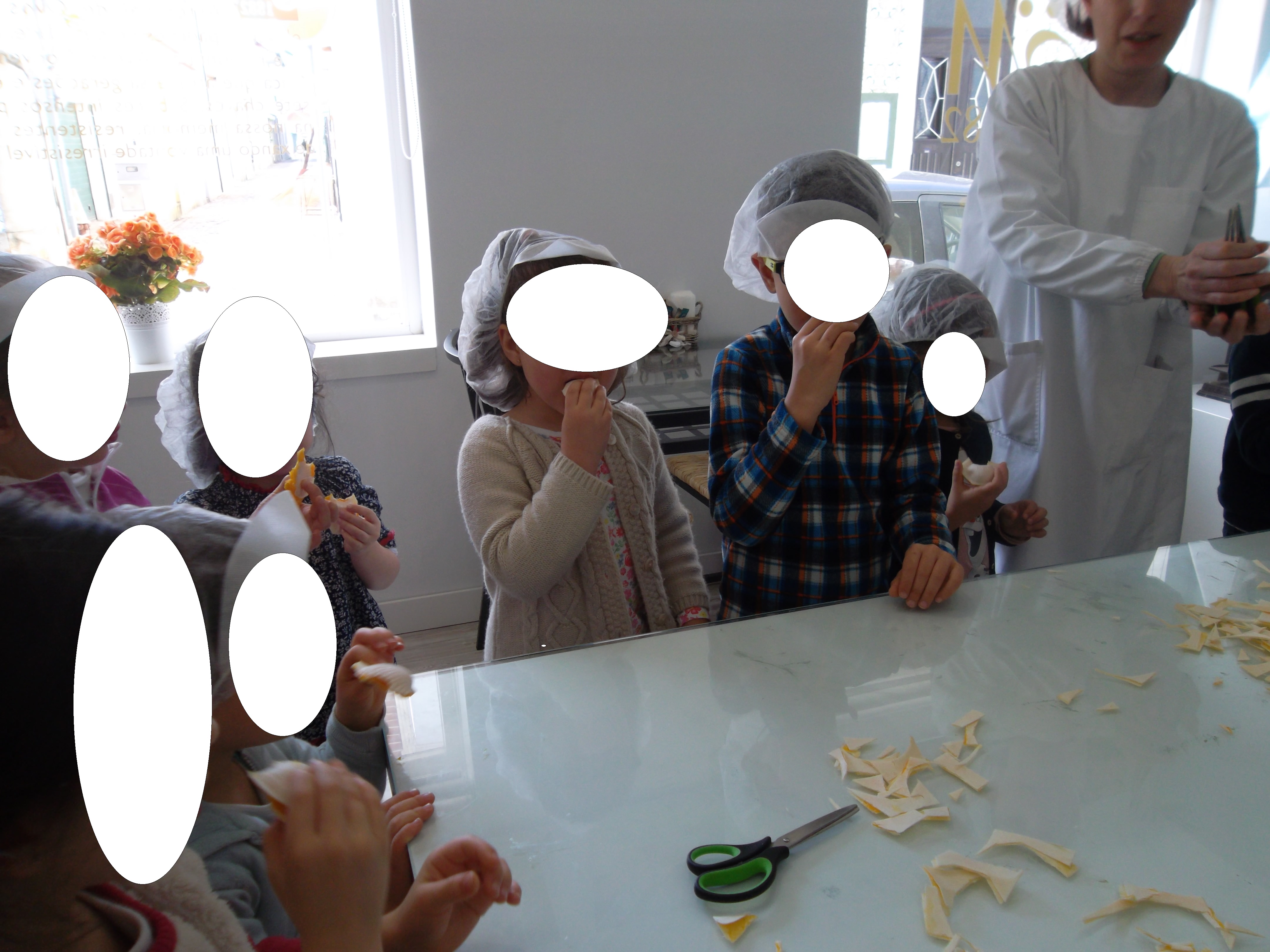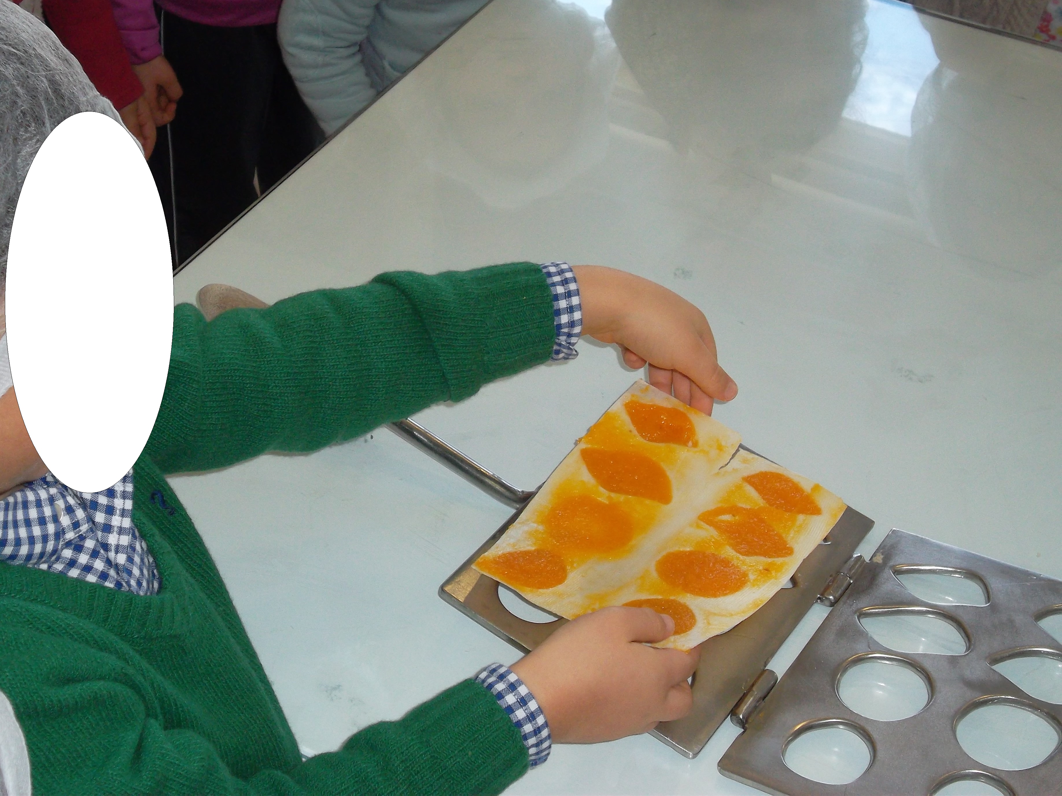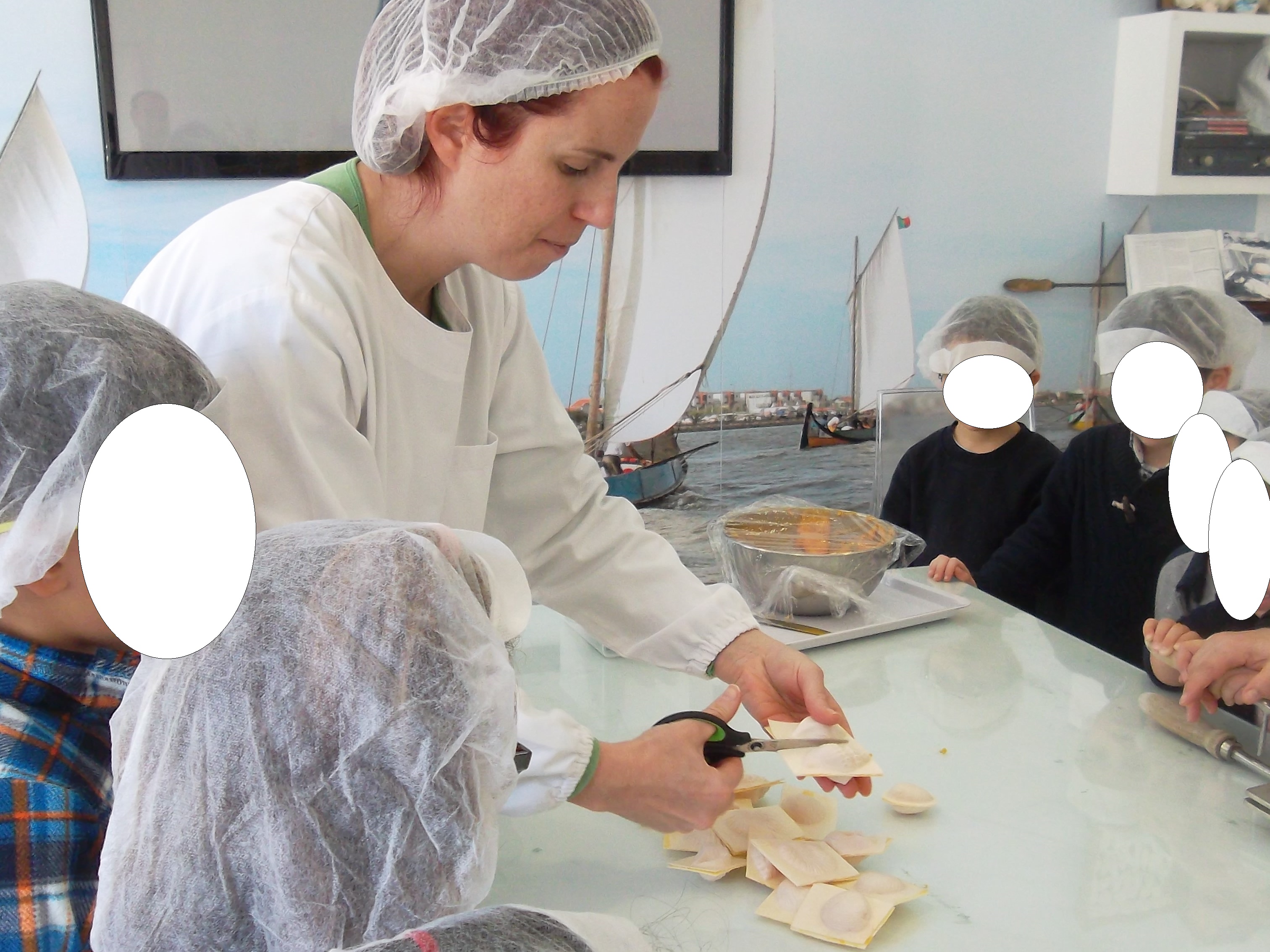 Cada criança ajudou a confecionar ovos-moles e aprendeu todos os passos importantes desde o enchimento das formas até ao corte dos ovos-moles.