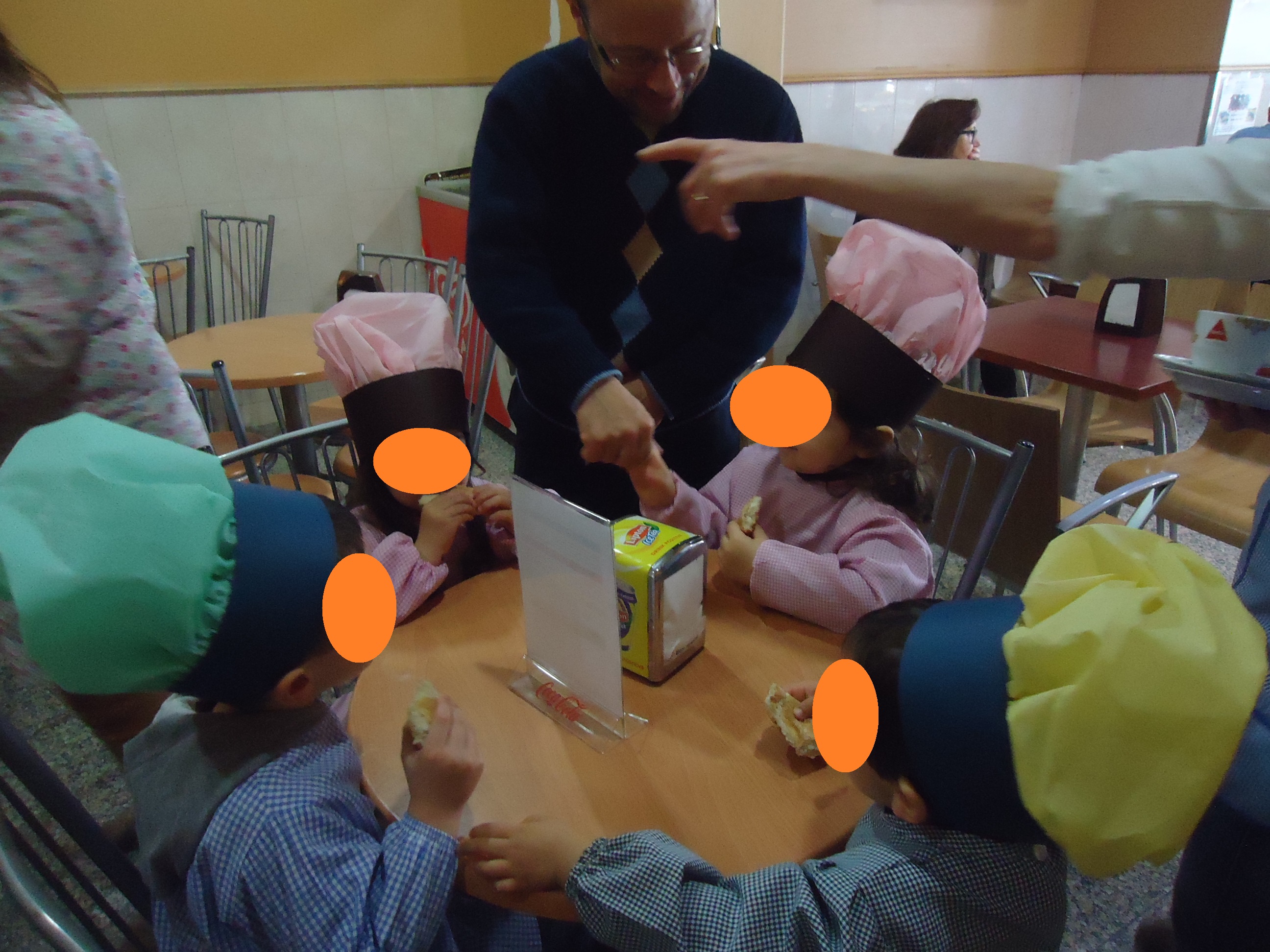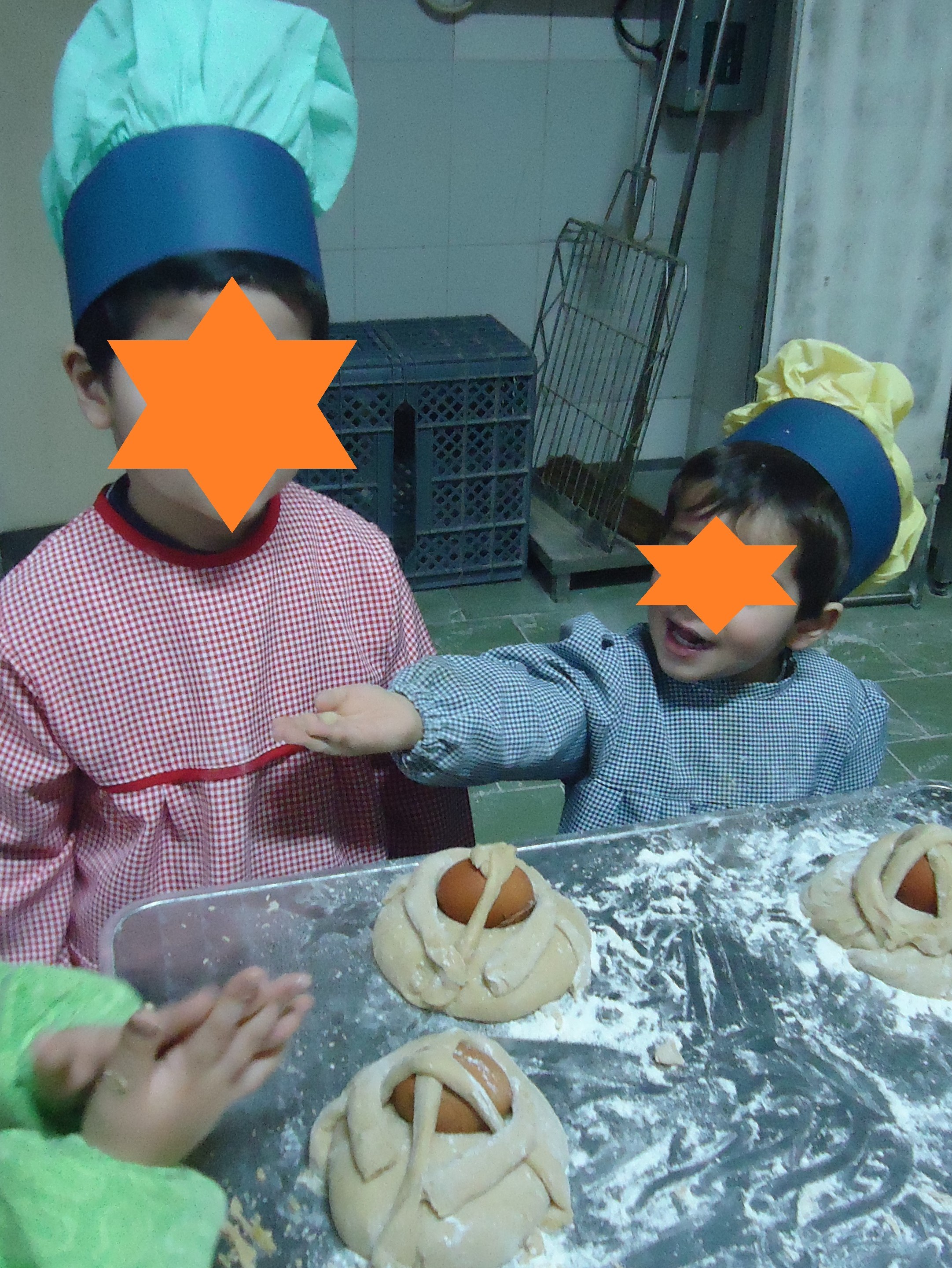 Estávamos muito ansiosos e contentes porque a Márcia e a Isabel executaram os chapéus de “Chef” para entrarmos na pastelaria, a Dina, o Paulo, a D. Lúcia e o pasteleiro já estavam à nossa espera!