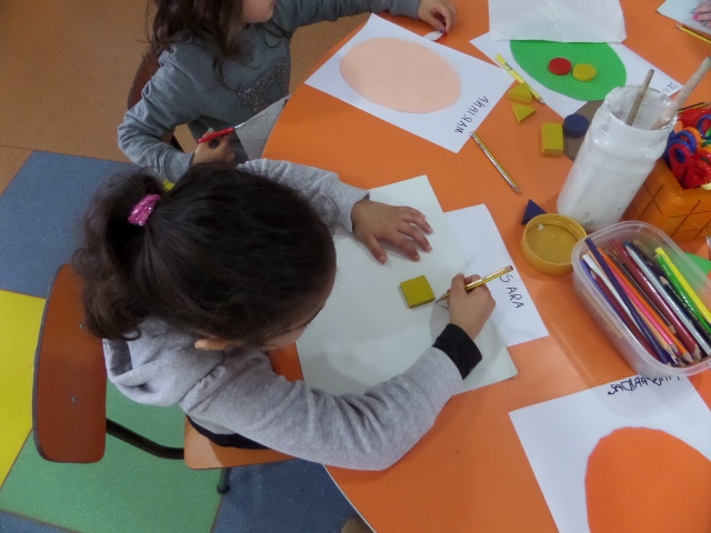 Recortámos, picotámos e contornámos ovos de Páscoa com figuras geométricas.