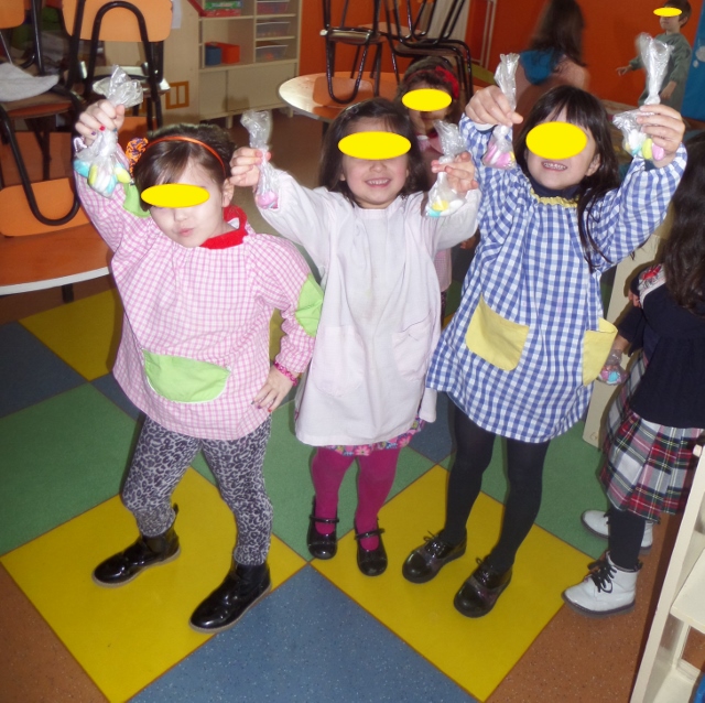 Montámos um pinto muito fofinho para levar as amêndoas que o coelho da Páscoa escondeu na nossa sala e que nós tivemos que procurar.