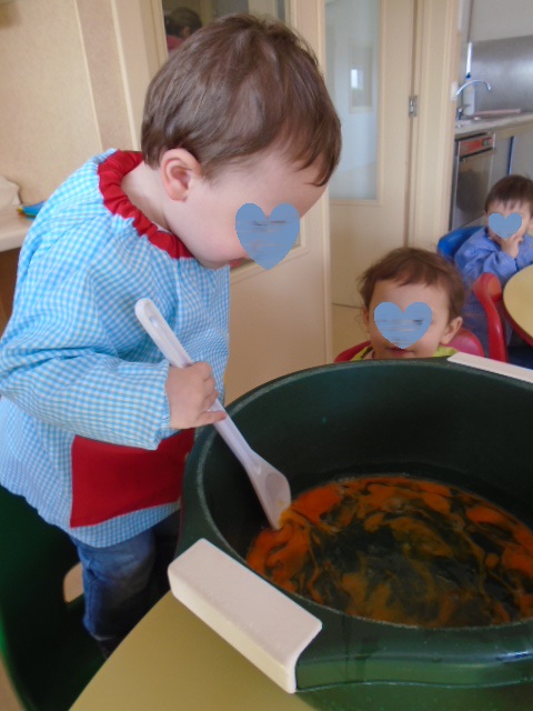Temos feito também algumas experiências a partir de tinta – mistura de cores e exploração de texturas!