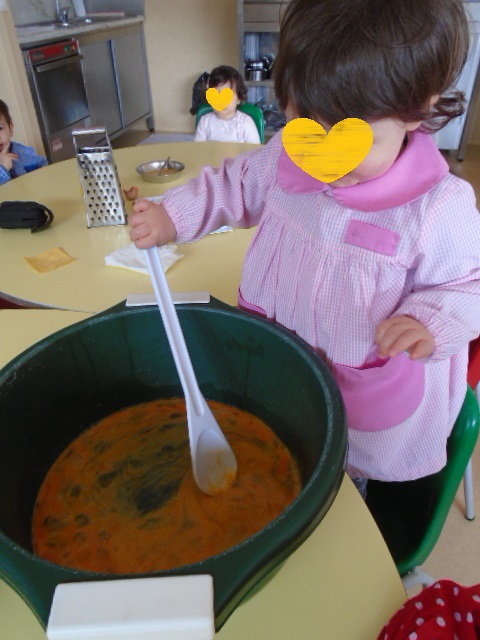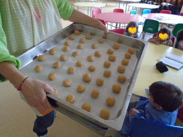 Além disso, pusemos a mão na massa e fizemos broinhas para colocar dentro de uma galinha que oferecemos aos nossos pais e às nossas mães. E provámos e cheirámos todos os ingredientes: açúcar, limão, farinha…