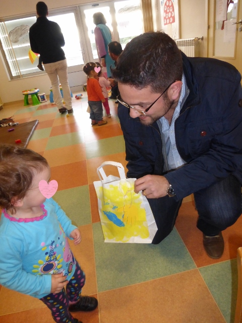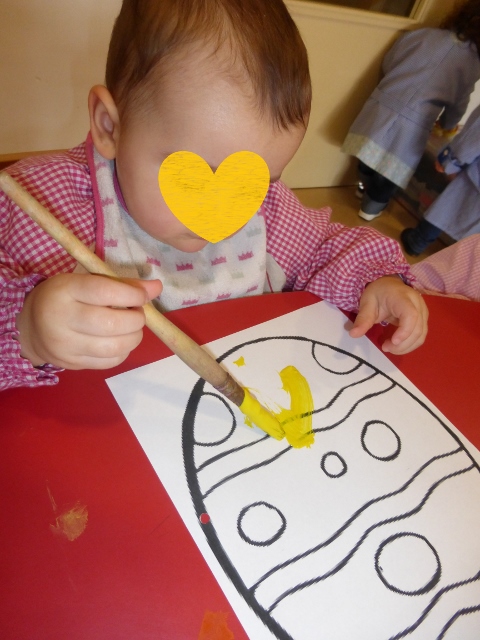 Depois desta comemoração como só os nossos pais merecem foi tempo de explorar a temática da Páscoa: pintar ovos, e ouvir histórias de coelhos que pintam e escondem ovos na floresta!