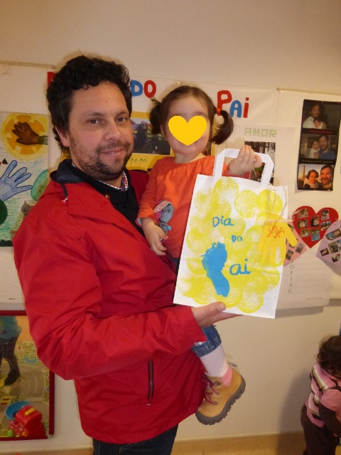 Ás escondidas dos papás, pedimos às mães colaboração para arranjar fotografias de cada um com o seu pai para fazer a prenda: um calendário: dedicámo-nos muito a esta tarefa e queremos agradecer às mamãs a colaboração. Os nossos pais gostaram muito. Além da prendinha que fizemos, pedimos aos pais um pequeno trabalhinho para expor na sala, que contasse um pouco da nossa história… o resultado foi: trabalhos lindos e diferentes!