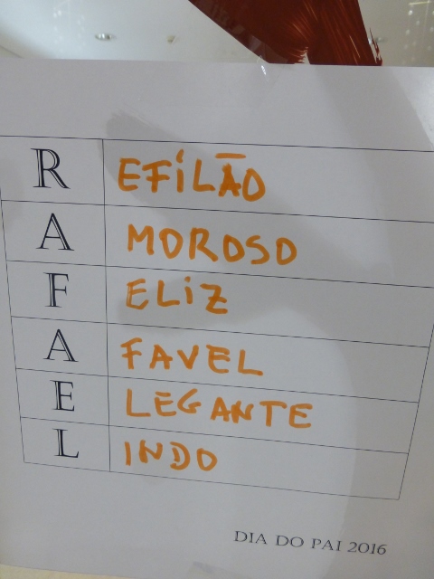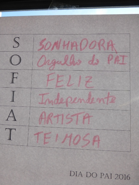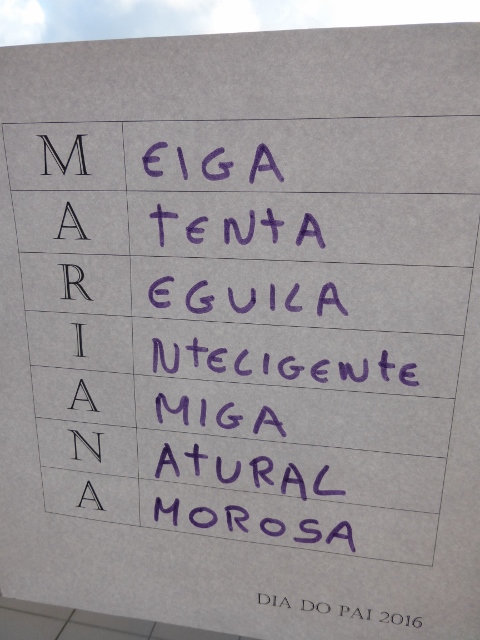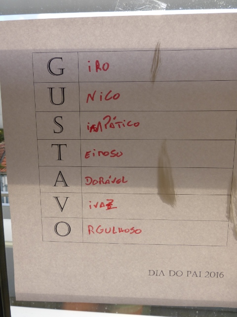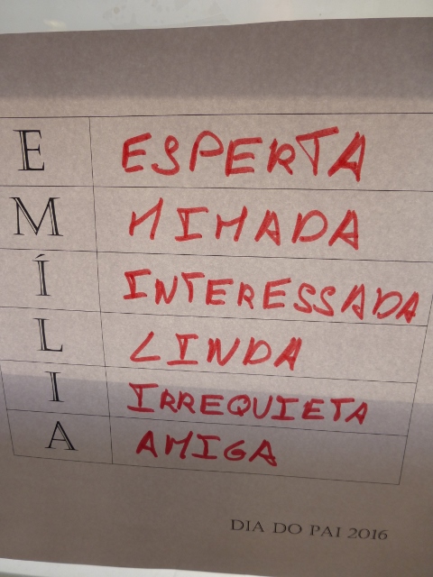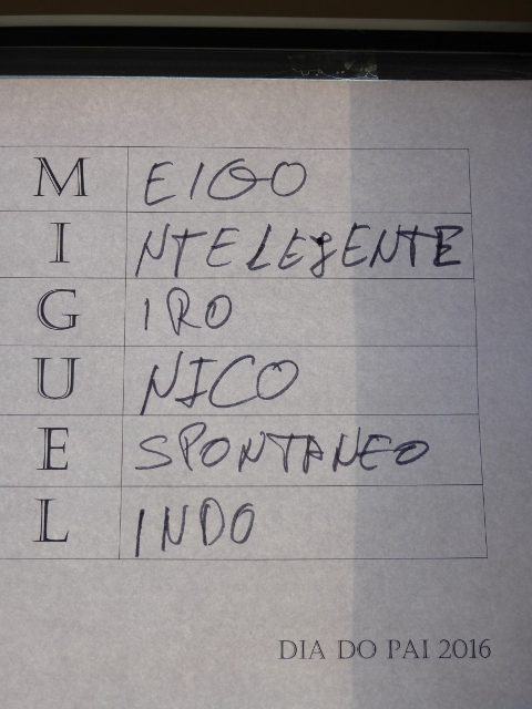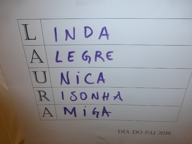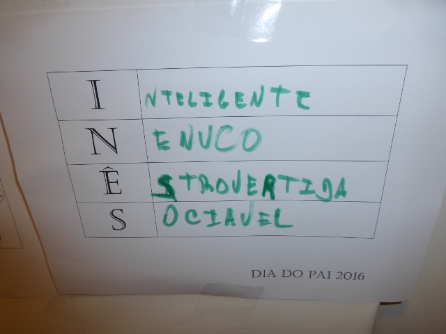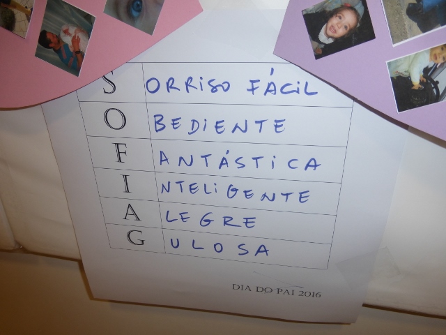 No dia do pai, recebemos os papás na sala e lançamos-lhes mais um desafio: fazer um acróstico a partir do nome dos filhos…