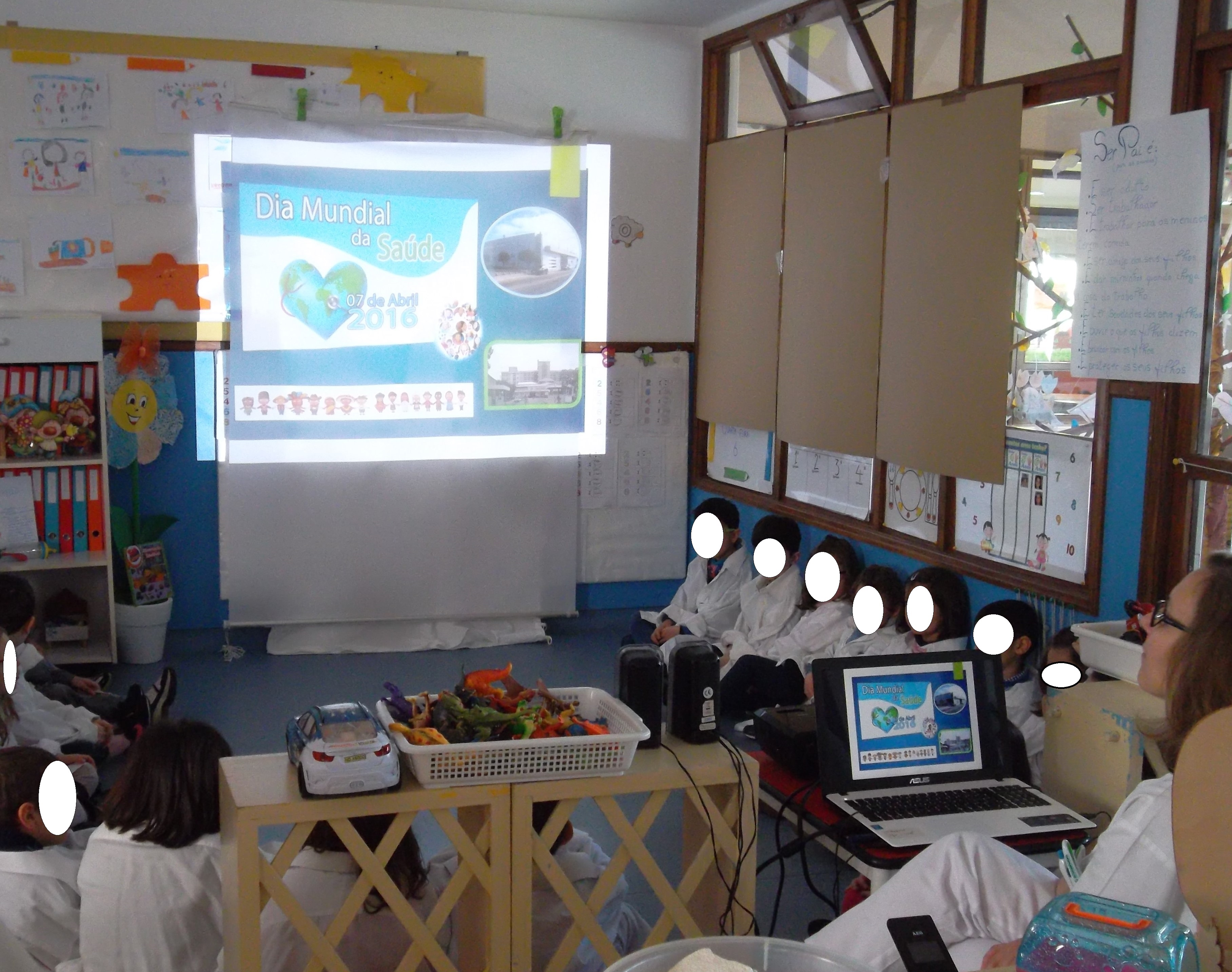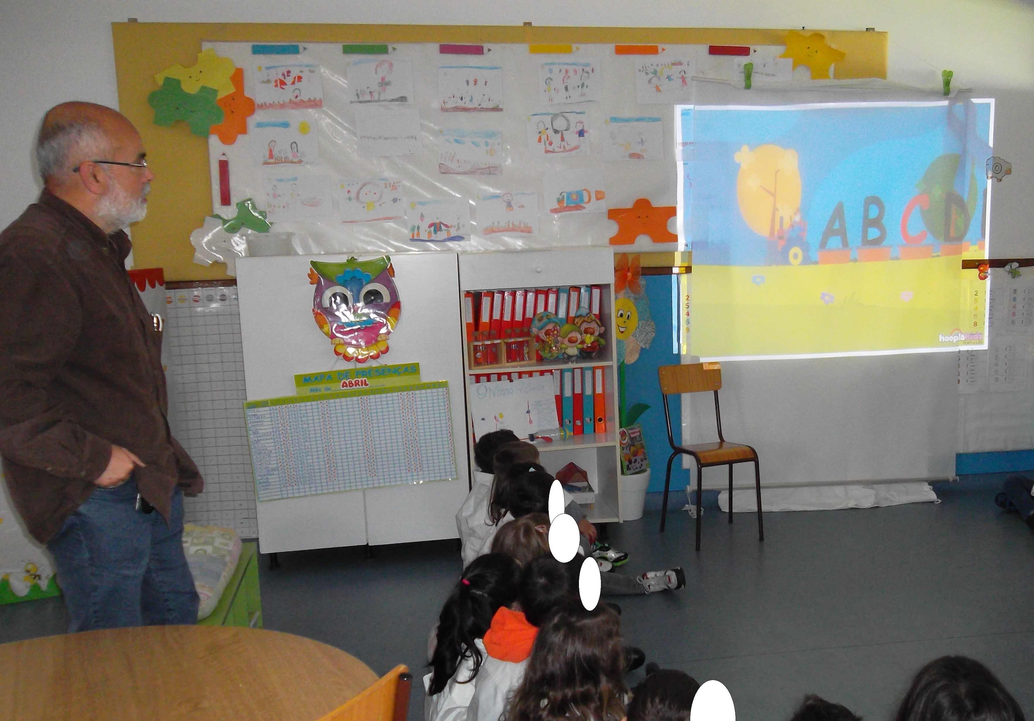 No dia da saúde a mãe da Joana dinamizou uma atividade com um livro intitulado “ABC do Hospital” através da qual as crianças puderam ficar a conhecer melhor o Hospital utilizando o abecedário, no qual o personagem principal é o Vouguinha..