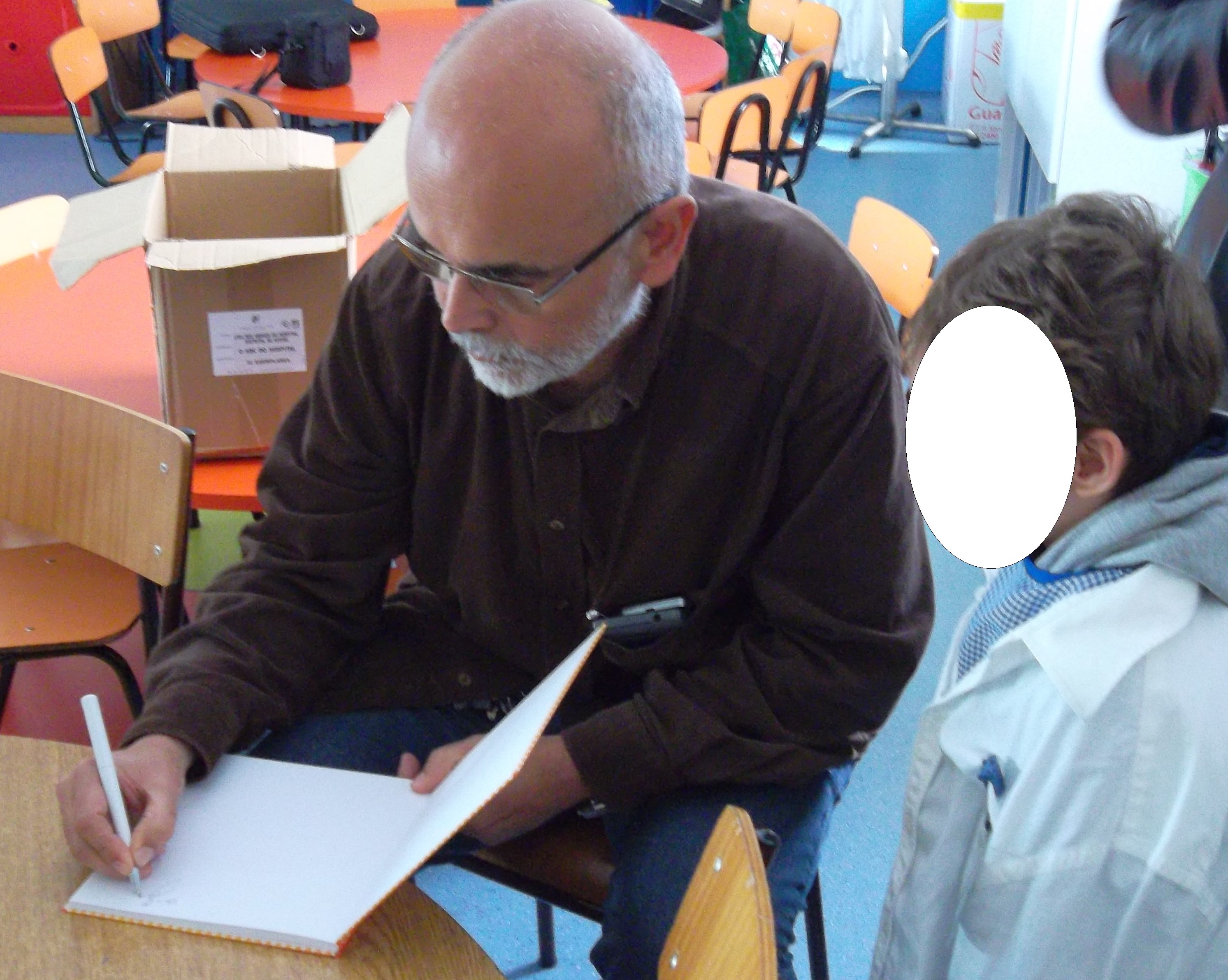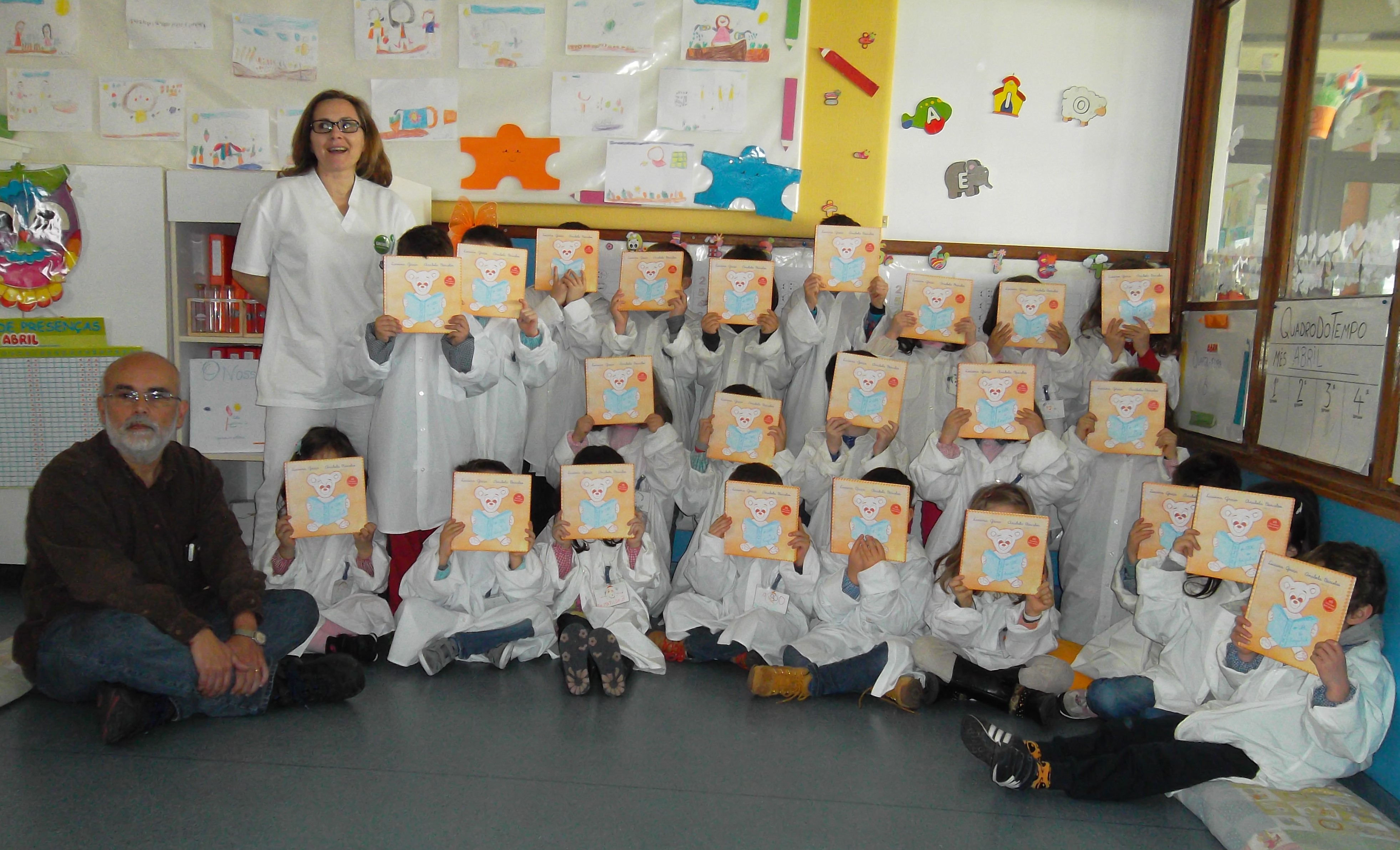 Recebemos a visita do Dr. José Santos cardiologista do hospital de Aveio que faz parte do livro e veio não só para conversar um pouco com o grupo de crianças como também para dar o seu autógrafo a cada uma das crianças em particular.