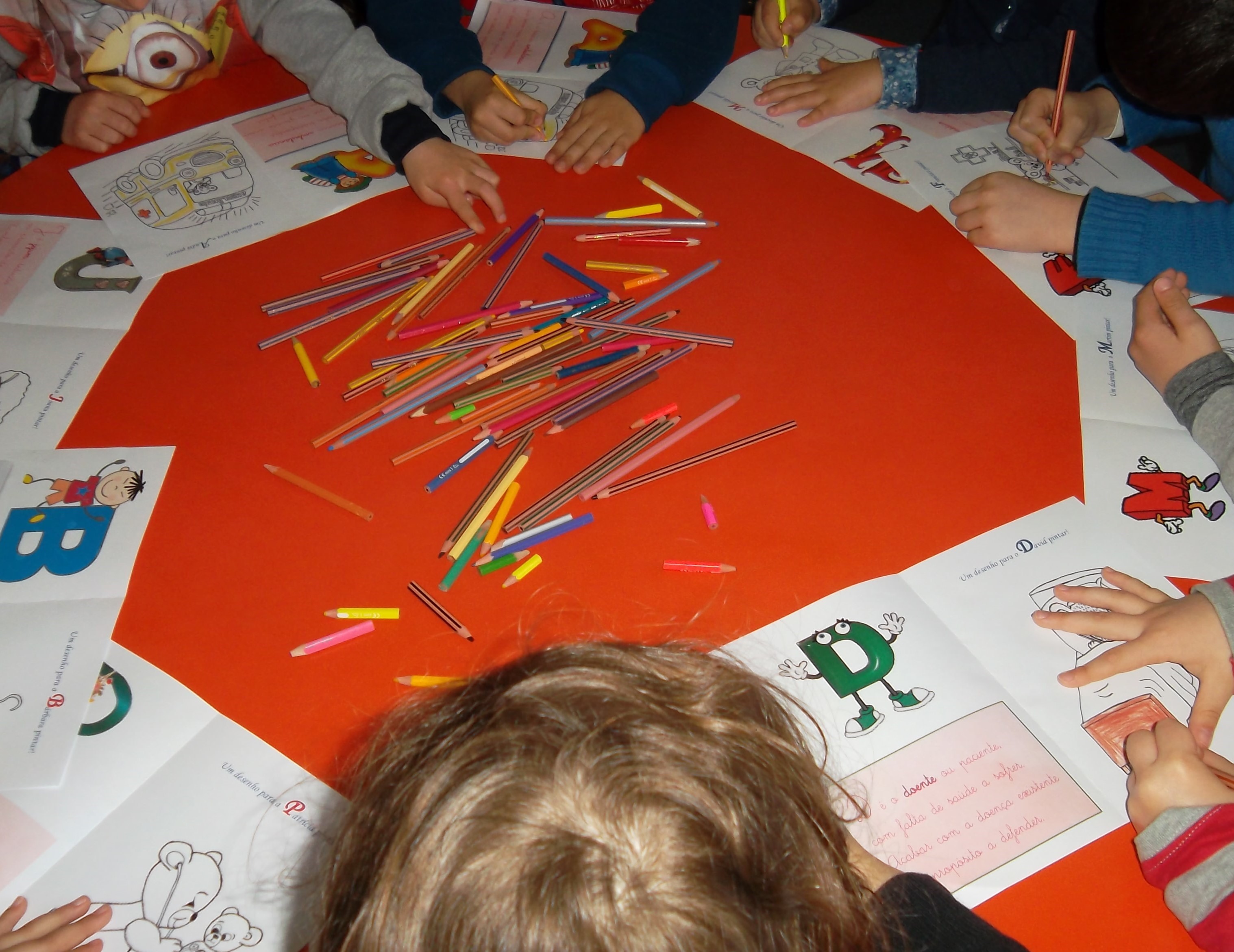 No final a mãe da Joana desafiou cada criança a colorir a página do livro correspondente à letra do seu nome, ao que todos aceitaram com muito entusiasmo.