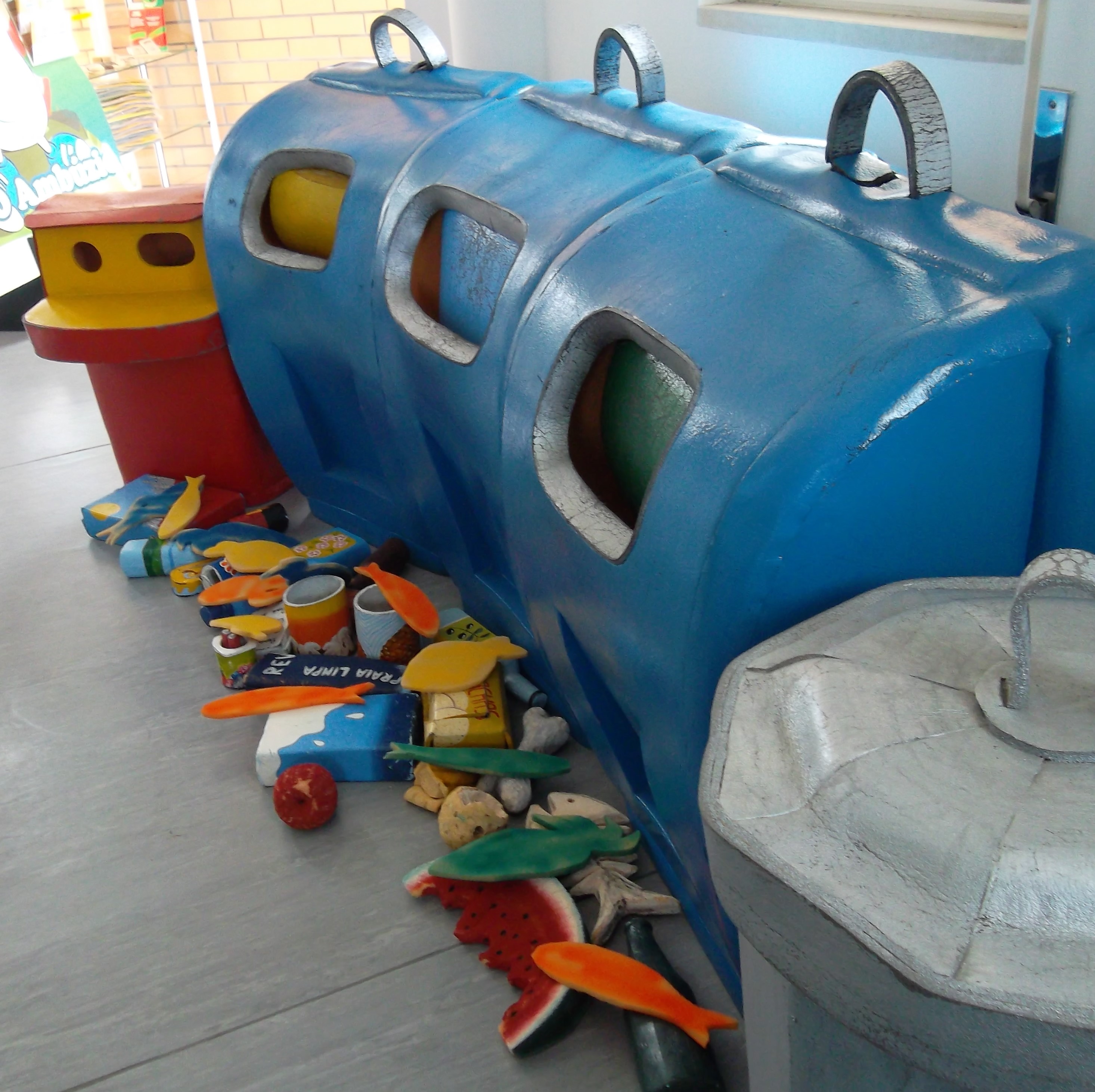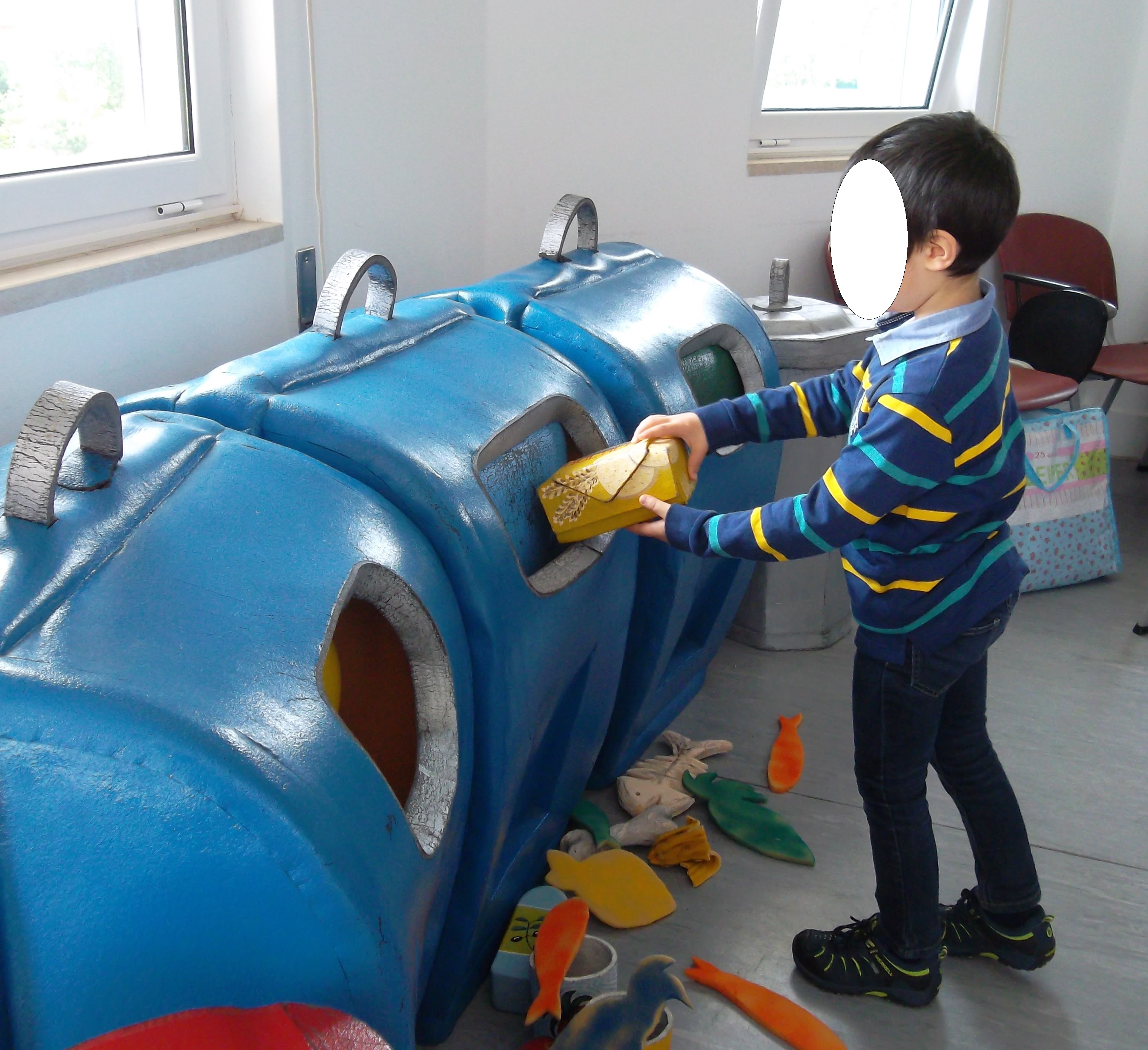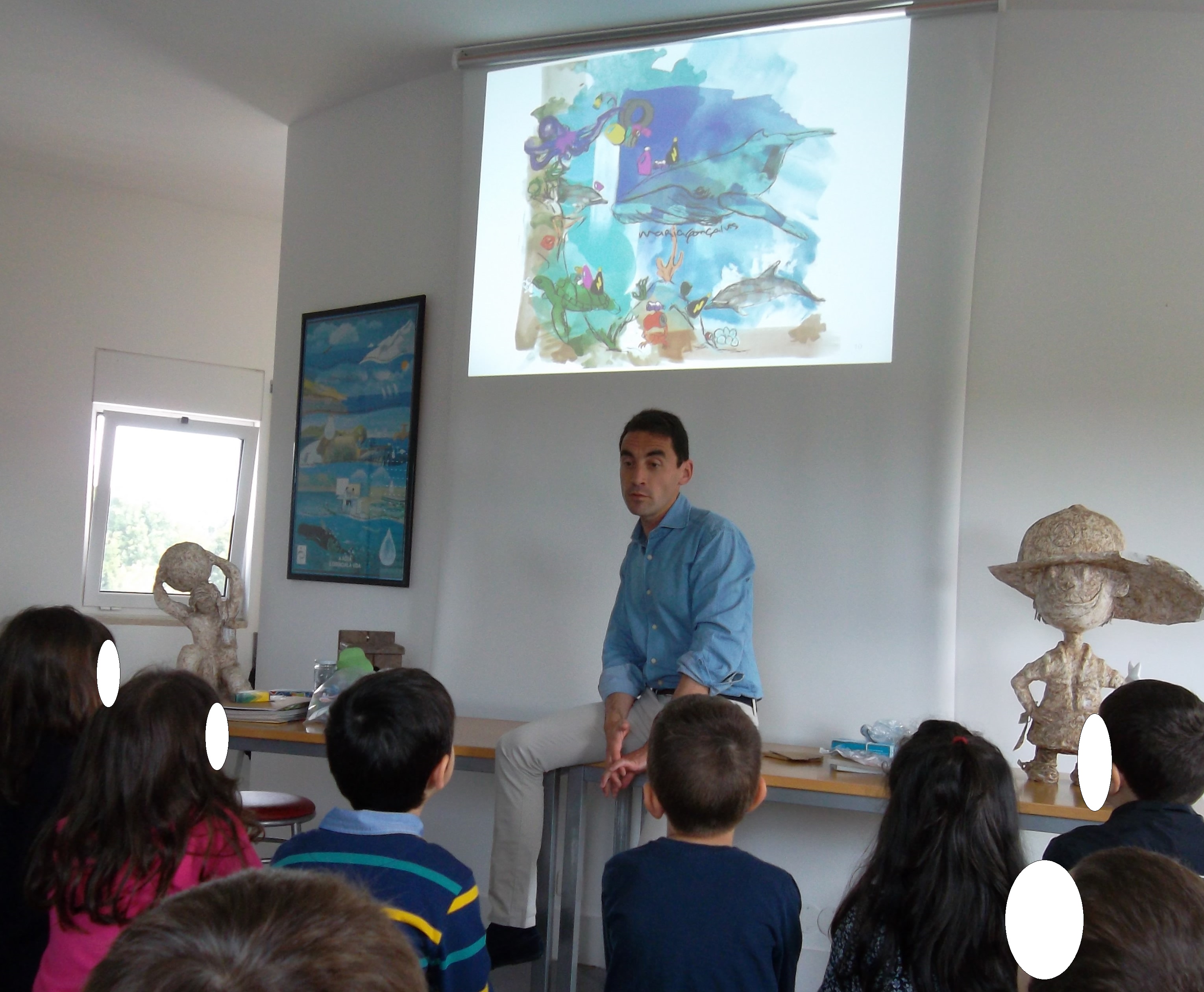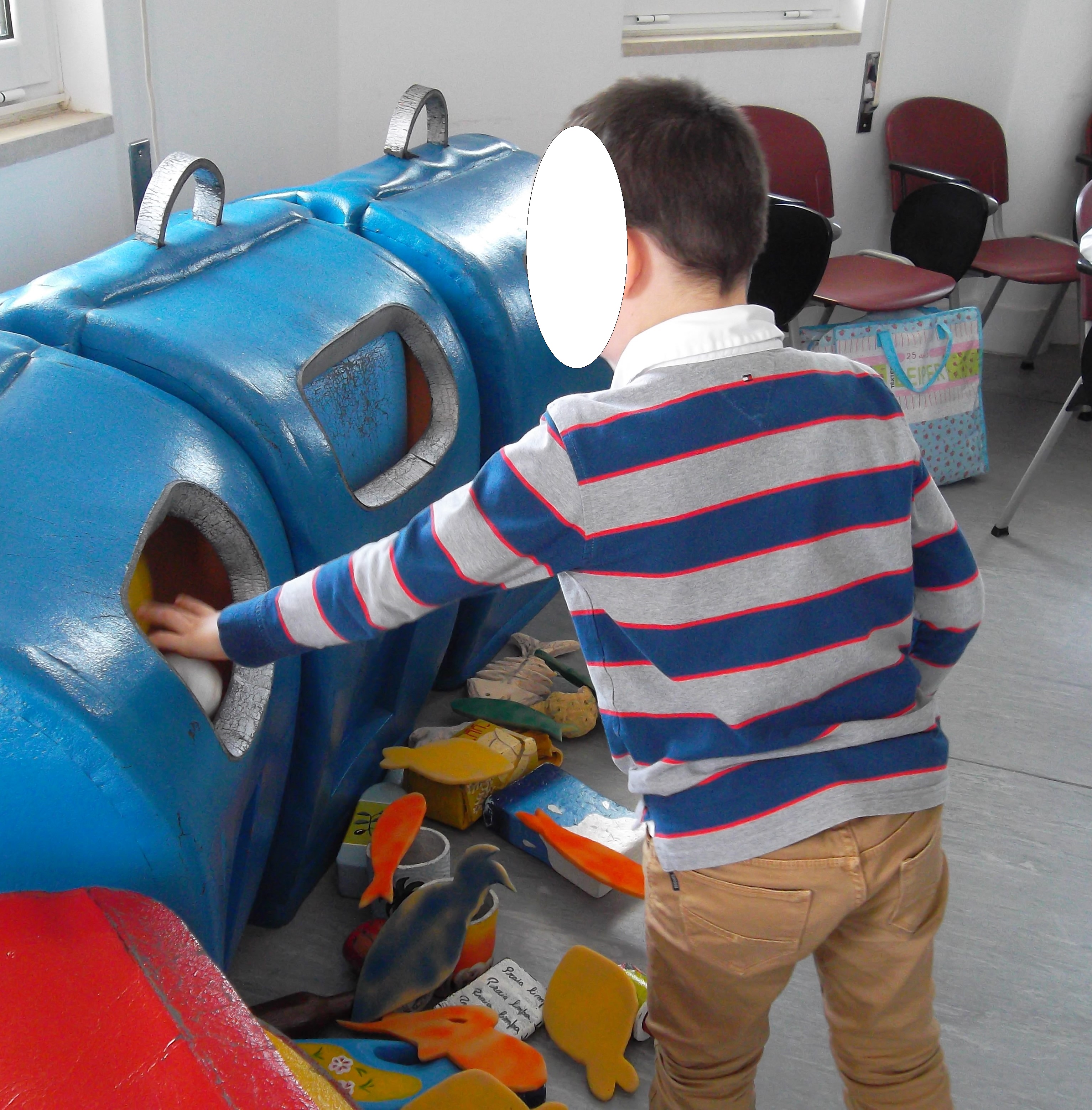 No dia da biodiversidade fomos conhecer o Eco Centro Municipal de ílhavo e o engenheiro Luís contou-nos a história da “Baleia Graciosa” que o seu único defeito era ser vaidosa. Conta a história que encomendou ao polvo um colar para ficar mais bonita e o polvo fez-lhe o colar com os lixos que os humanos deitaram para o fundo do mar. A baleia Graciosa teve um bébé e num dia de tempestade o seu colar partiu-se e como qualquer criança, a pequena baleia, filhota da Graciosa, comeu algumas peças do colar. A sorte é que a pequena baleia vomitou o lixo quando bebeu o leite da mãe.