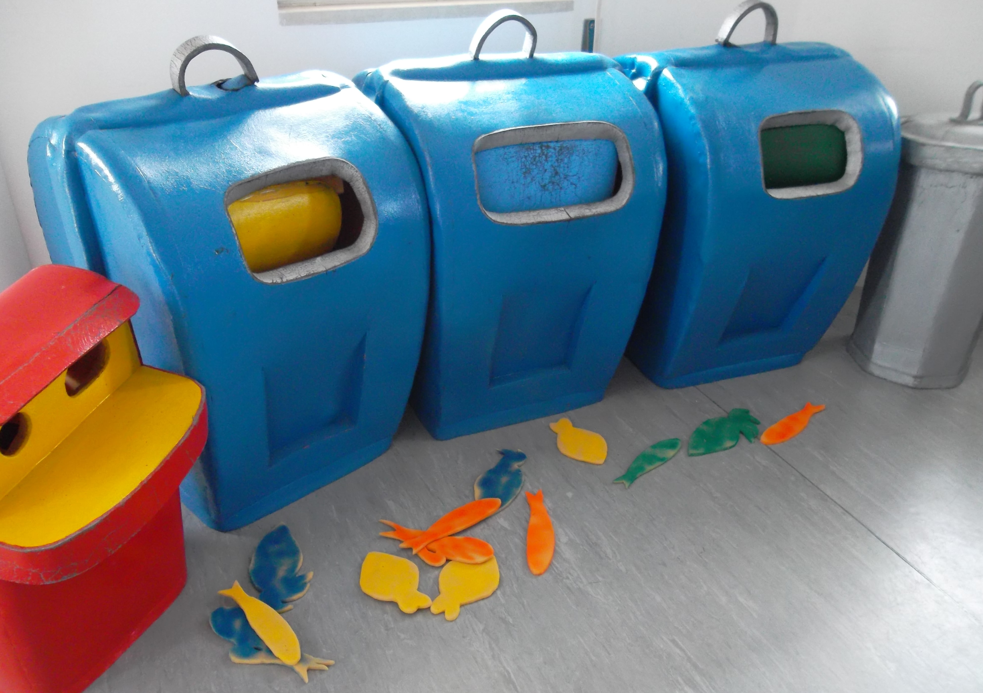 Após ouvirmos a história fizemos um jogo no qual limpámos o fundo do mar e separámos o lixo nos diferentes espaços do ecoponto.