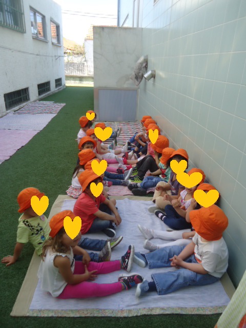 Na hora do almoço, as crianças receberam novamente outra surpresa, almoçaram na parte exterior, na relvinha do pré-escolar!