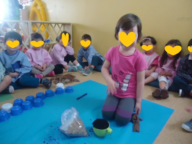 Uma atividade que estava pendente, a sementeira da relva…numa manha em grande grupo cada criança colocou a terra num recipiente e depois a relva.