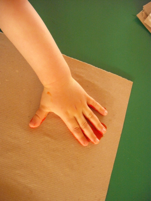Depois aproveitamos para fazer a impressão das nossas mãos construindo assim um caranguejo.