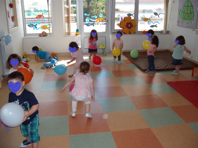 Um menino do nosso grupo trouxe para a sala um grande saco de balões, e claro está que aproveitamos logo para brincar com alguns deles.