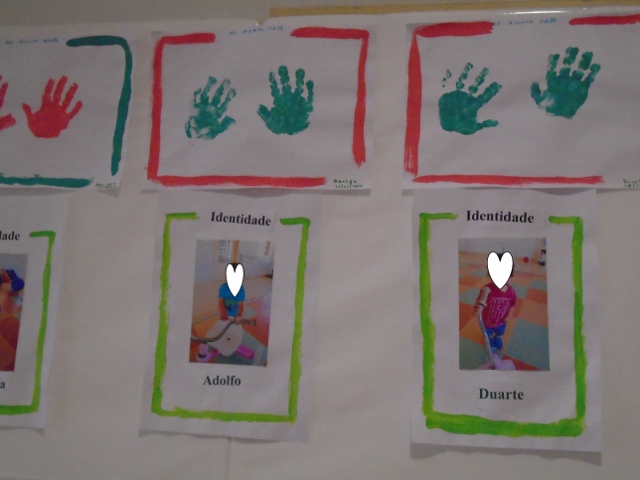 Realizámos também este mês as nossas capas para colocar os trabalhinhos e fizemos a impressão dos pés e das mãos, também a nossa foto para nos começarmos a conhecer e aos outros. A Sandra fez o placard dos aniversários e colocou em cada janelinha a nossa foto e o dia do nosso aniversário. Ficou muito engraçado. Brincámos também na sala parque com as bolas, triciclos e balões. É uma coisa que gostamos de fazer. Tudo é novidade e cada dia que passa fazemos uma descoberta.