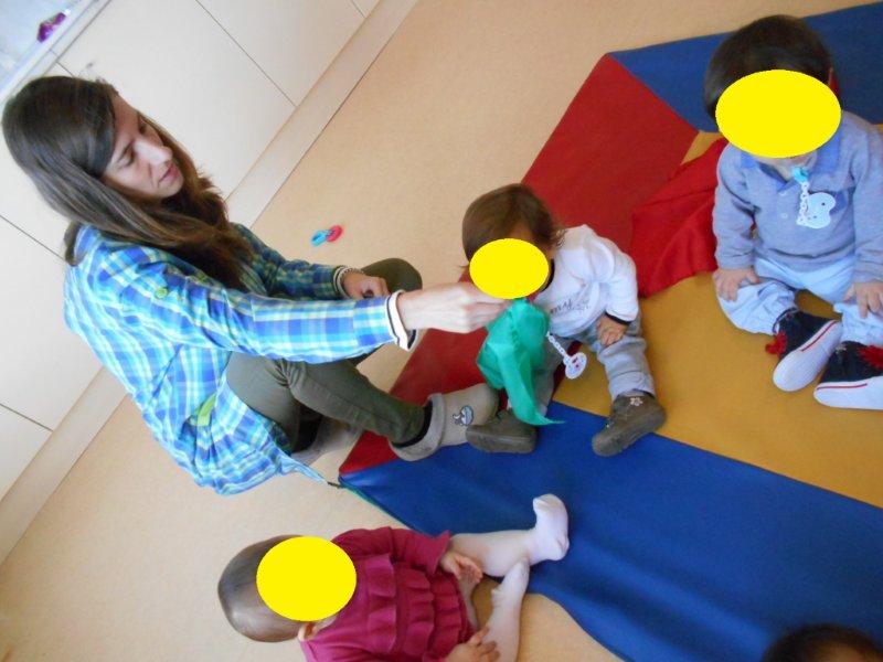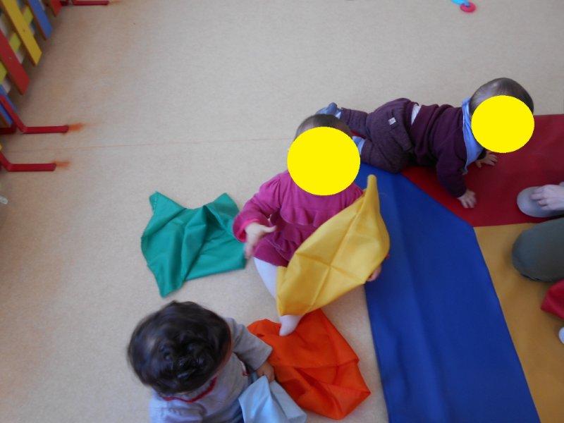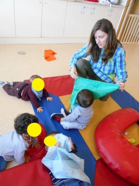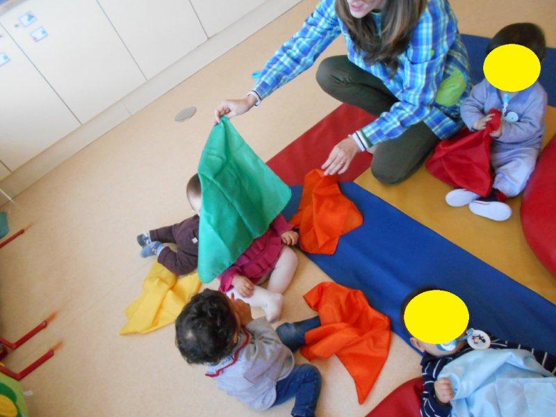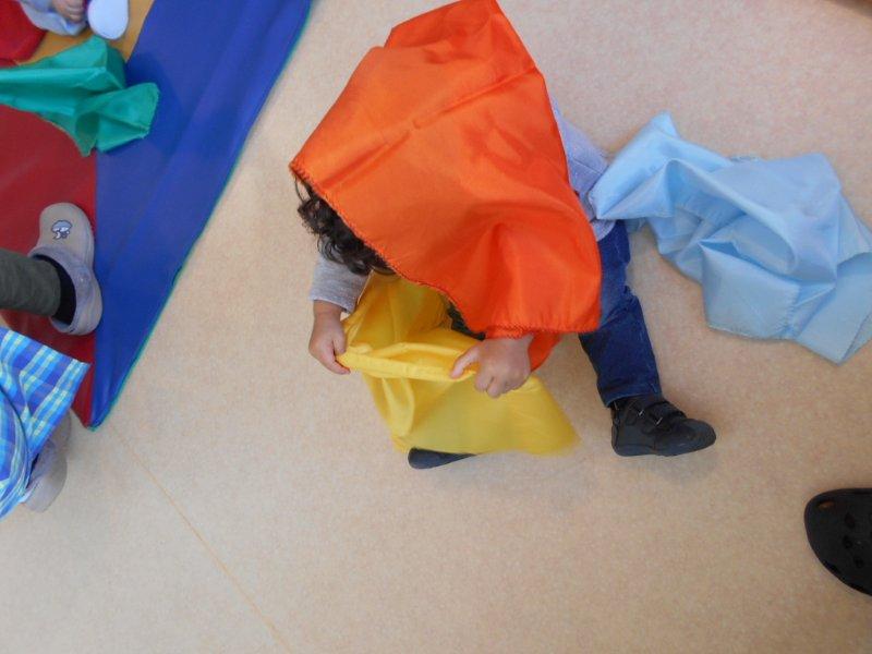 Também brincámos com lenços coloridos ao som de música clássica e foi tão giro ver as suas cores, senti-los a fazer cócegas na nossa cara, escondermo-nos debaixo deles…