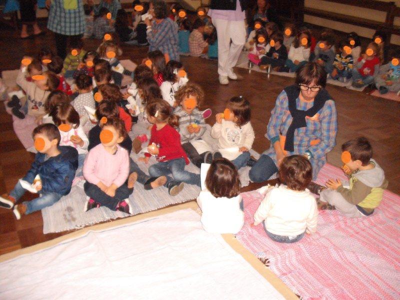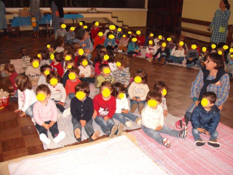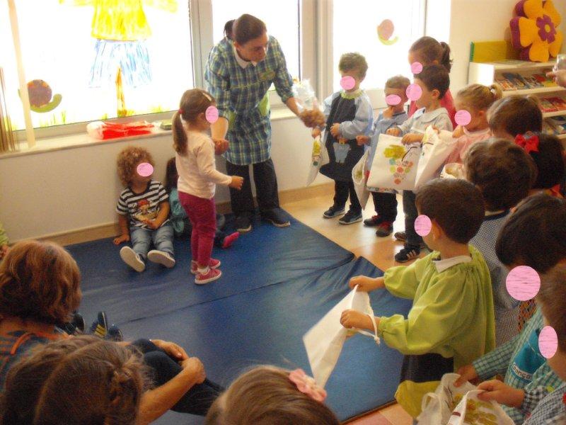 Na transição do mês de outubro para novembro comemoramos em Portugal o Pão por Deus, e por isso recebemos a visita dos meninos da sala amarela e da sala verde, que nos vieram pedir o Pão por Deus. Cada um com o seu saquinho recebeu um miminho nosso.