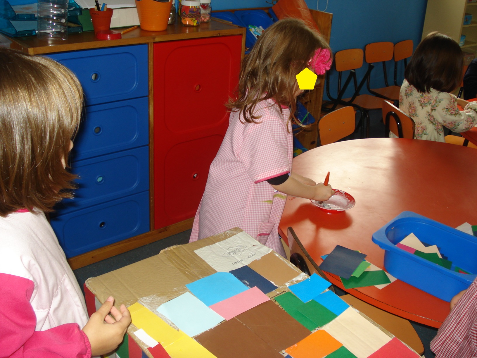 Começamos a fazer as decorações de Natal para enfeitarmos a nossa sala, bolas recortadas e coladas para pendurar no teto, bolas com cola e lã para a Árvore de Natal, e mais algumas decorações que ainda vamos fazer. Também já fizemos as decorações para enfeitarmos uma árvore no jardim do Lar, estrelas com palhinhas e contas e sinos com copos de “danoninhos”. Mas do resto falaremos depois.