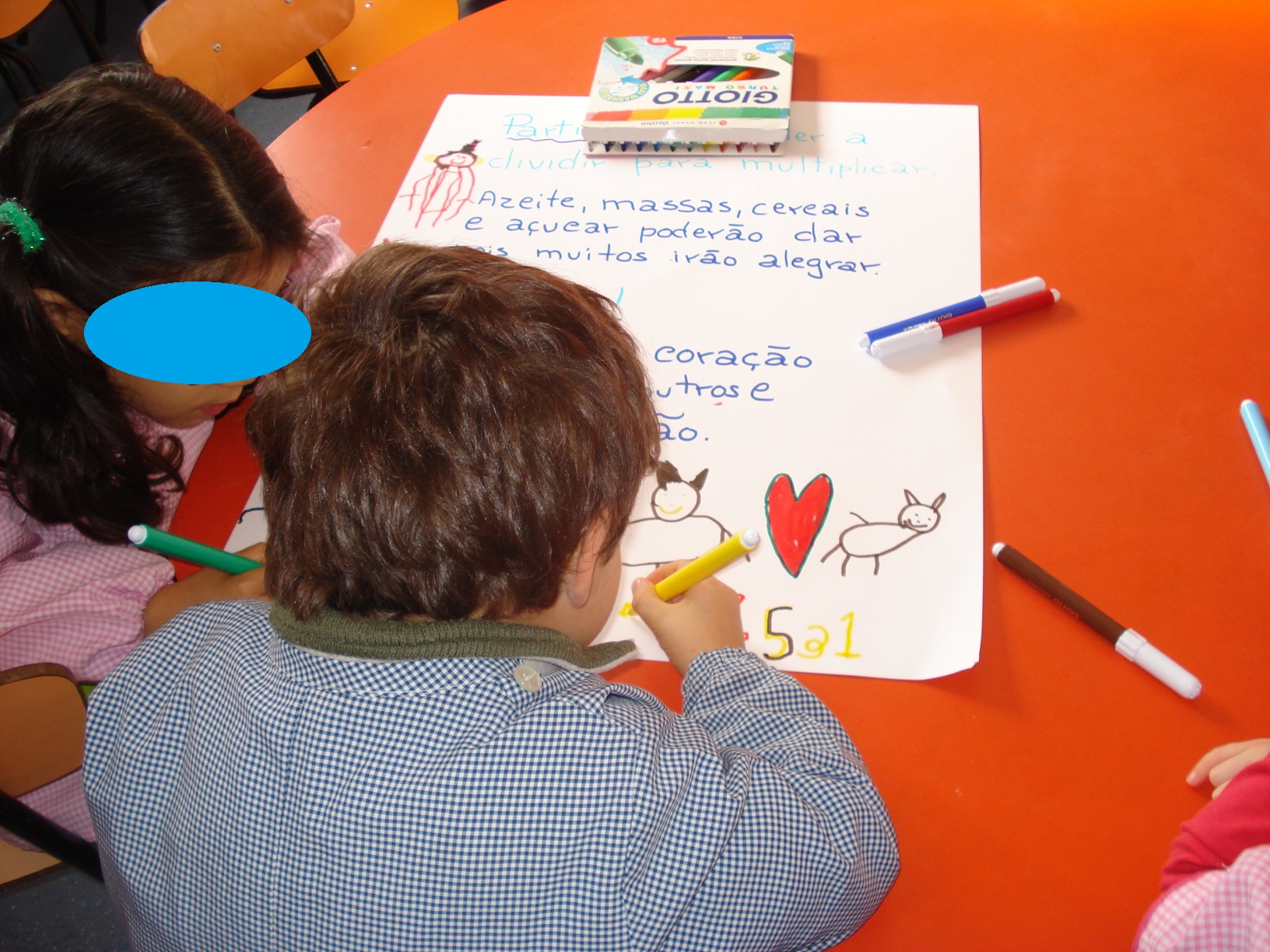 Escrevemos a carta ao Pai Natal com os nossos desejos, esta tinha o formato de uma árvore e decoramo-la com cristais e brilhantes, iniciamos uma campanha de angariação de alimentos para as famílias mais necessitadas da Paróquia, decoramos um caixote grande com restos de cartolinas coloridas e fizemos um cartaz a apelar á boa vontade, pois ajudar custa muito pouco e faz-nos bem ao coração.