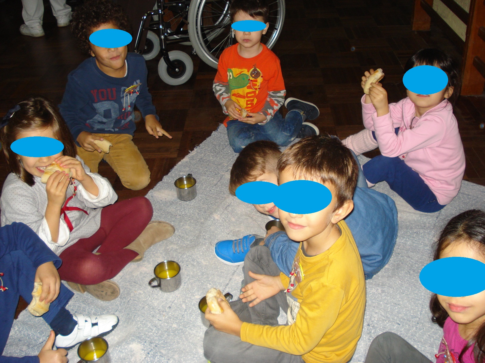Entretanto chegou o dia do magusto e recebemos os “Avós” do Lar que vieram partilhar a festa connosco, cantaram canções tradicionais acompanhadas por instrumentos e nós também cantamos para eles, a nossa canção contava a Lenda de S. Martinho, de seguida lanchamos e comemos bolo e castanhas assadas, para casa também levamos um cartucho de castanhas que os idosos tinham feito.