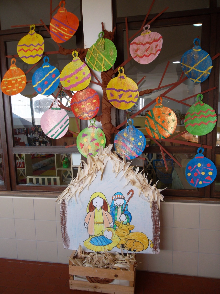 A nossa árvore decorámo-la com bolas de Natal e com a ajuda da Ana Paula pintámos o desenho de um presépio e assim criámos a nossa árvore do Natal.