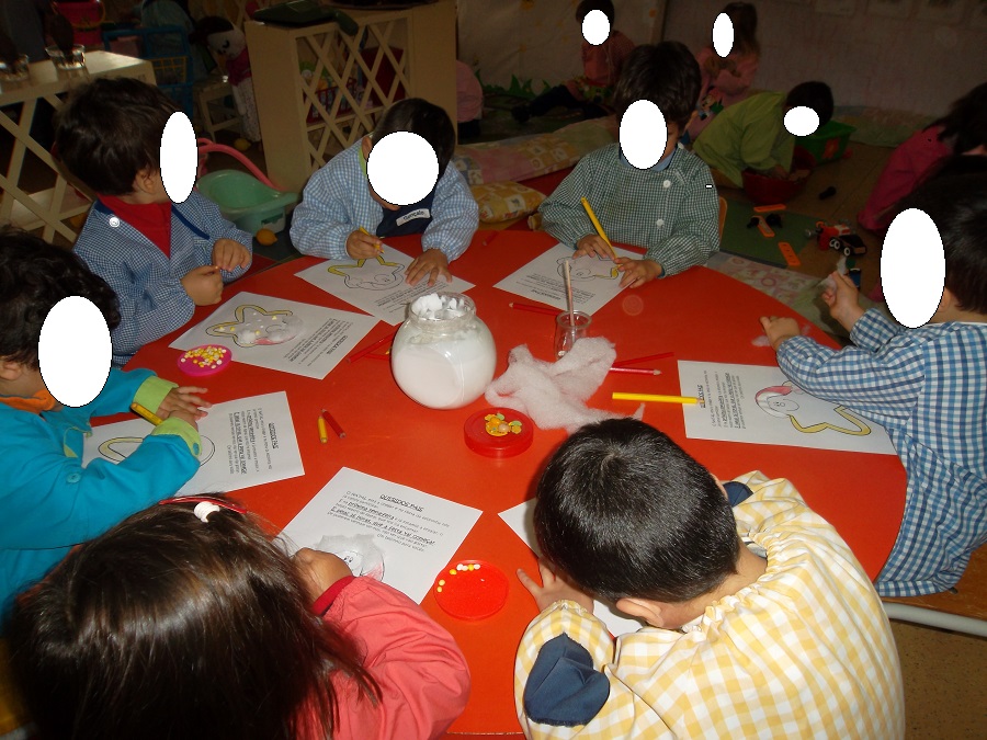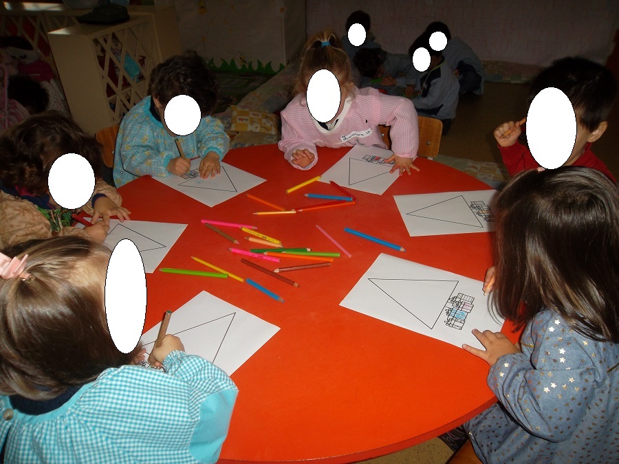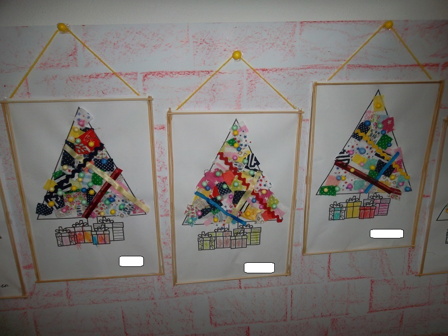 O nosso placar decorámo-lo com pinturas de árvores de Natal, nas quais passámos com o pincel por cima do risquinho. Ainda somos pequenitos, mas já sabemos fazer trabalhinhos bonitos e demonstramos capacidade de realização e empenho.