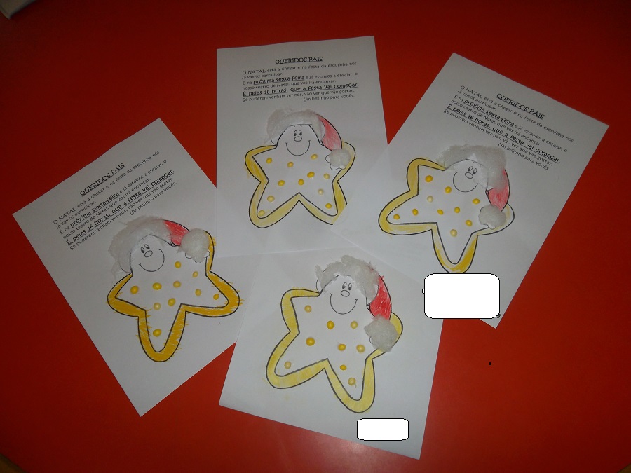 Para convidarmos os nossos pais decorámos uma estrelinha, que pintámos e colámos bolinhas.