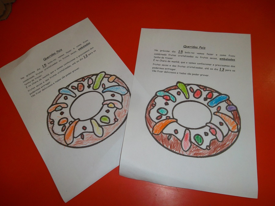 No dia anterior à nossa festa e como tinha sido combinado com os nossos pais fomos à pastelaria CHARA aprender como se confeciona Bolo-Rei fizemos um trabalhinho, para lembrar os nossos pais do combinado, e todos contribuíram com frutos e frutas cristalizadas. Foi a nossa primeira saída para uma atividade fora da nossa sala e foi muito divertido e rico em novas aprendizagens. No final todos levaram o seu bolo-rei para partilhar com a sua família, e estava delicioso. É muito bom termos grandes amigos à nossa volta que nos permitem estas vivências tão importantes, cheias de novas aprendizagens. Obrigada.