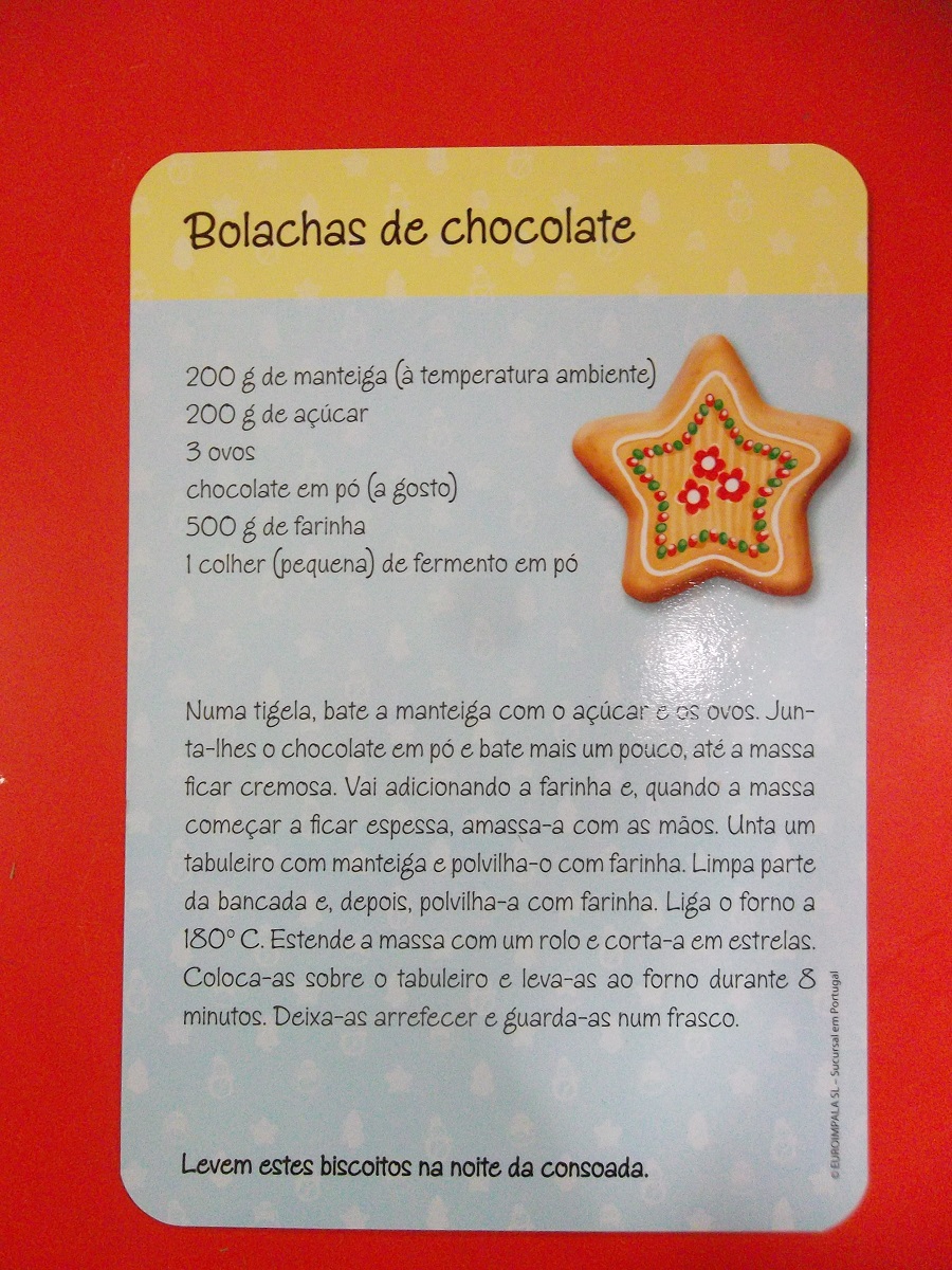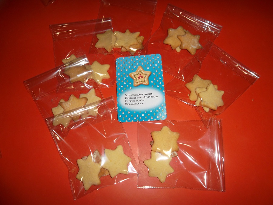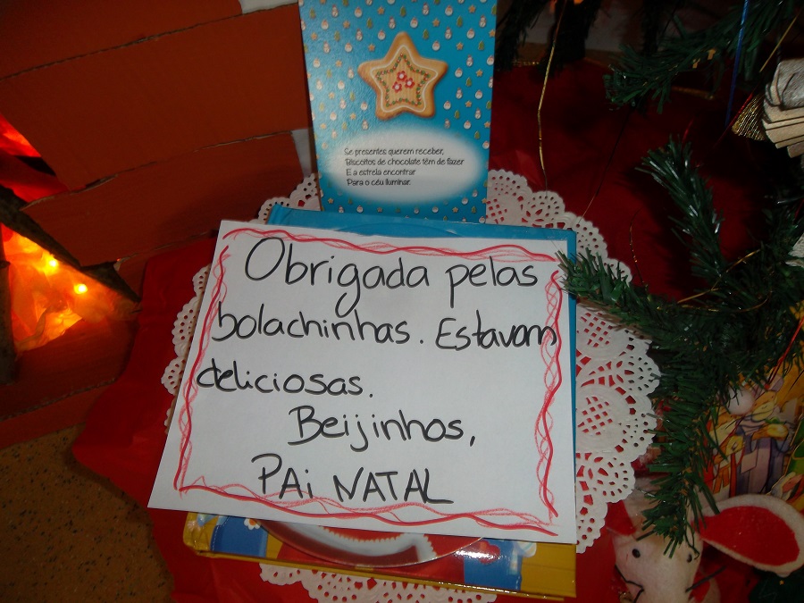 Todos levaram para casa uma saquinha com bolachinhas para partilhar com a sua família e aqui está a receita das bolachas que o Pai Natal pediu na sua história e que são muito boas e fáceis de fazer.