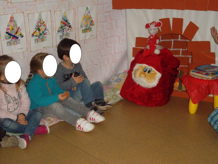 No fim da festa o Pai Natal veio à nossa sala dar-nos presentes e falar um bocadinho connosco e nós demos as nossas chupetas para os meninos pequeninos. Foi um passo muito importante no nosso crescimento, pois agora somos grandes.