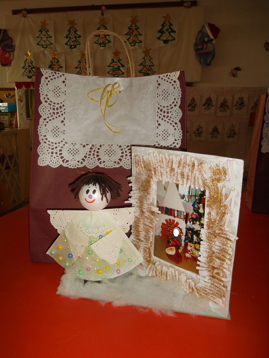 Com muito orgulho cada criança colocou o seu anjo na árvore que ficou muito bonita e admirada por todos os que pela sala passam. Realizámos também uma coroa para a nossa porta com dois anjos que simbolizam a partilha, valor realçado no nosso projeto da “Patrulha dos Amigos”.