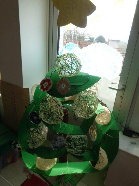 Colaborámos também num projeto com as salas da pré e com o lar Amélia Madail: ficamos responsáveis(juntamente com os meninos da Daniela) pela decoração de uma árvore no jardim do lar…. Ficou muito bonita com os nossos anjinhos!
