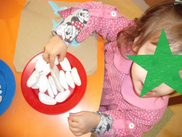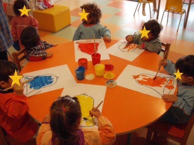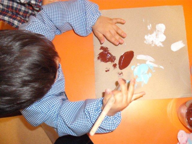Fizémos uma pintura com pincel, e as crianças mais velhas já conseguem pintar muito bem o interior sem passar os conotrnos.