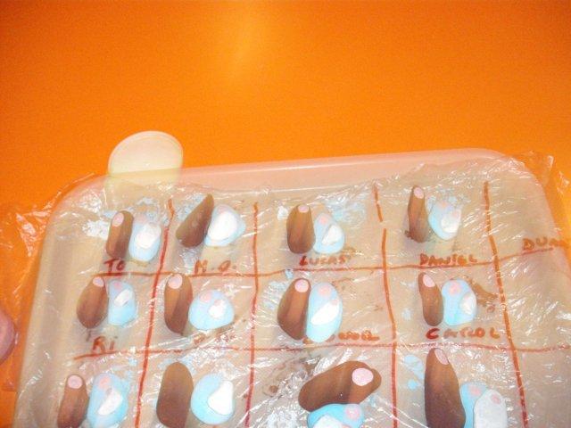 Entretanto começamos a preparar a nossa prendinha para a nossa familia. Cada um de nós escolhemos as pedras e depois pintámos, uma Maria, um José e um Jesus. Depois foi só montar tudo, e assim ficou!