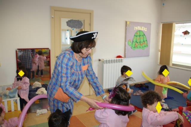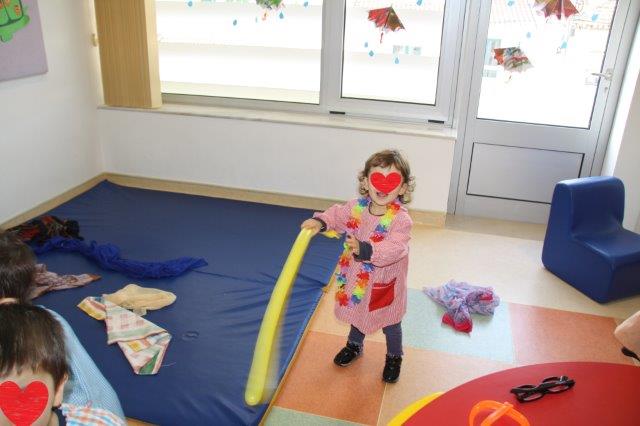 Fizemos uma festa “particular” de carnaval, com muitas máscaras, óculos, chapéus, narizes e muita animação. Mas o que gostamos mesmo, foi dos balões compridos.