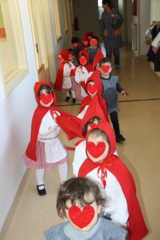 E agora por fim, o momento alto do nosso mês de fevereiro, a nossa festa de Carnaval. Como gostamos muito do lobo mau, a Daniela propos-nos vestirmo-nos de lobos mau, e de capuchinhos vermelho. Claro que adorámos a ideia, e até ao dia da festa andámos sempre muito entusiasmados. A festa foi muito divertida, e portámo-nos tão bem! Também gostámos muito de ver os meninos e meninas das outras salas, tão coloridos. Querem ver como foi?