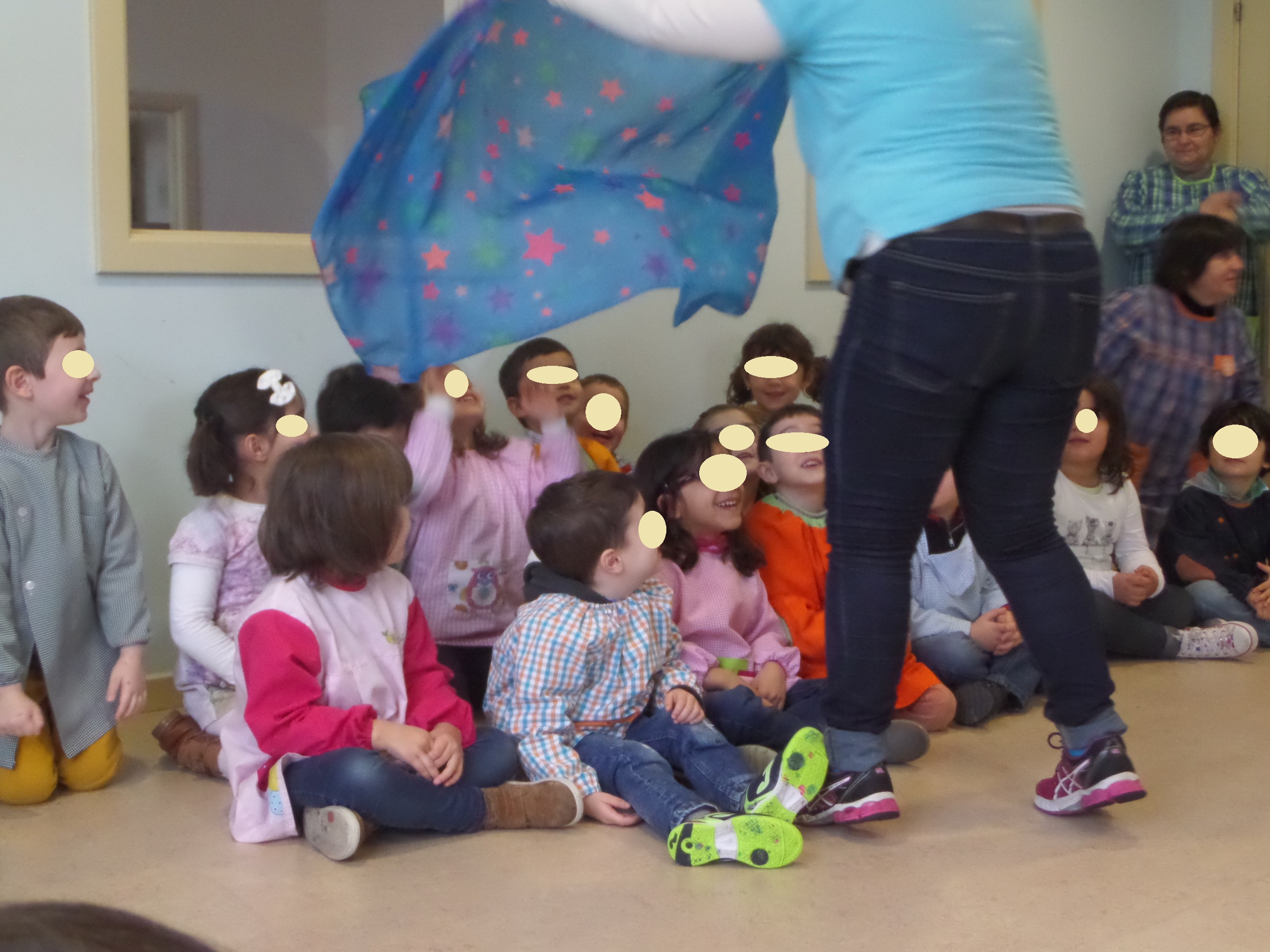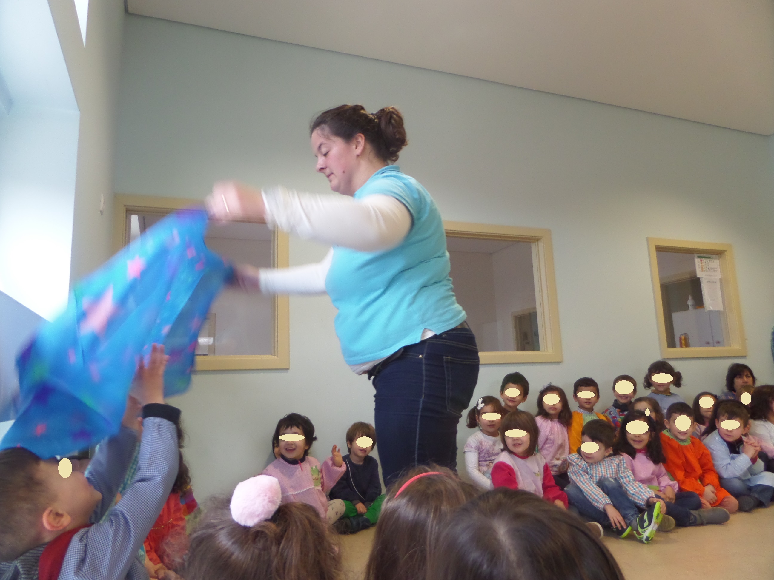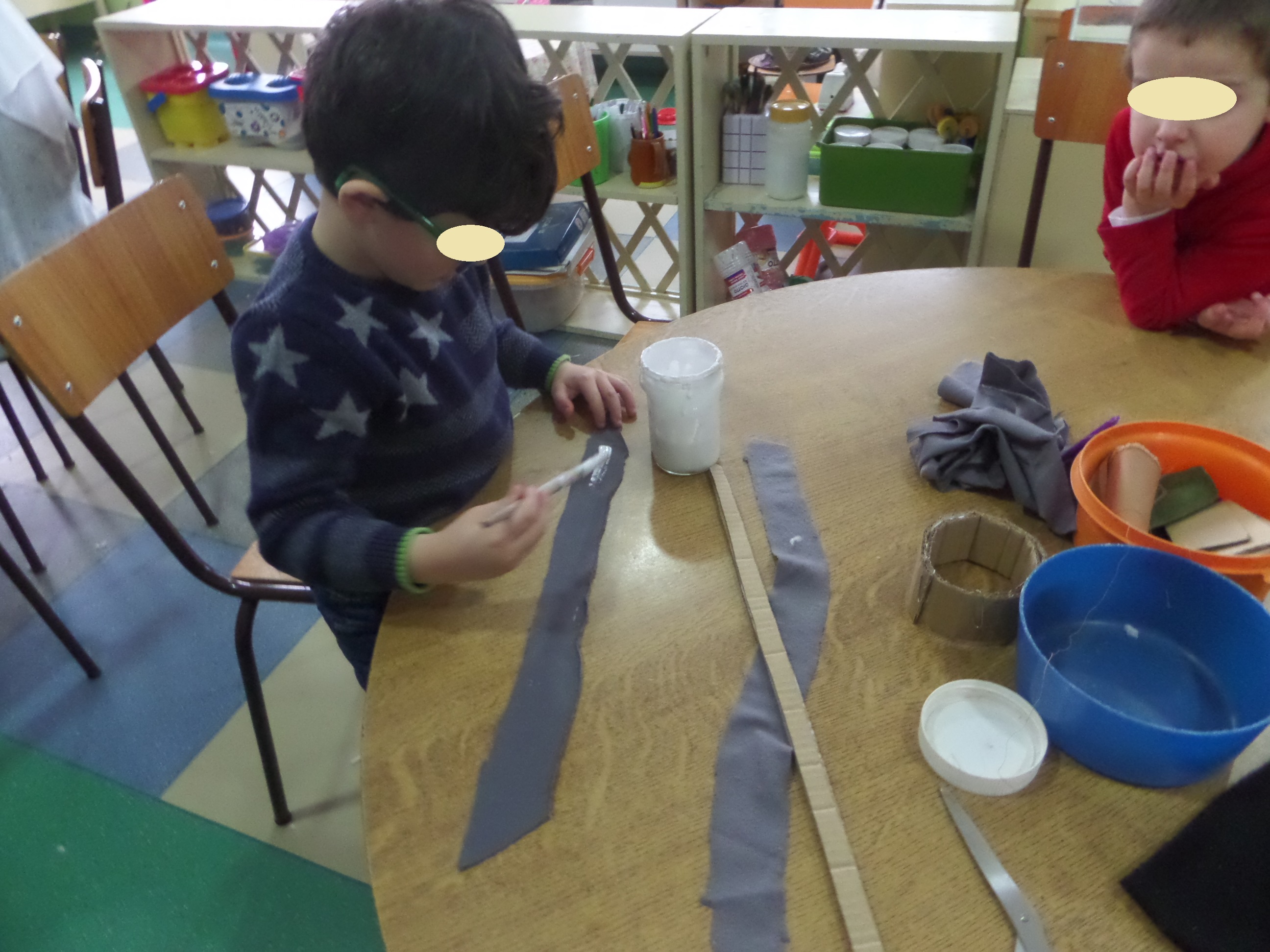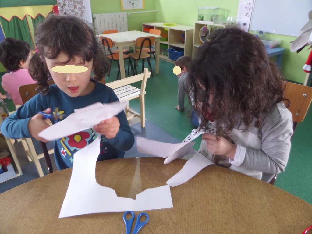 As meninas foram vestidas de Sininho e os meninos de Peter Pan e ao mesmo tempo que delineávamos como iriamos trabalhar/ representar esta história, o Santiago demonstrou vontade em desempenhar o papel de Capitão Gancho, o vilão da história, e em grupo decidimos que iríamos construir também o polvo que lutava com o capitão Gancho.