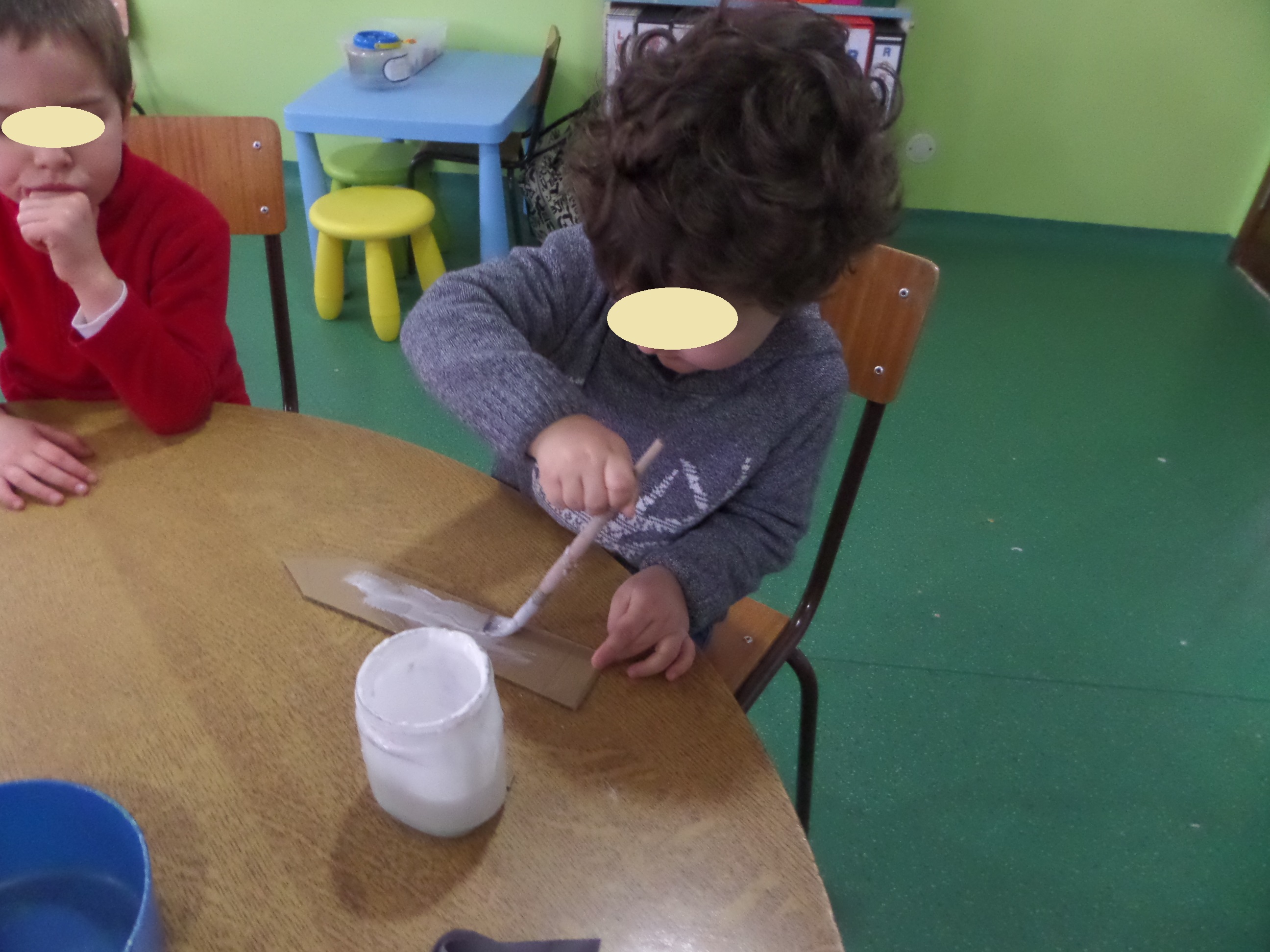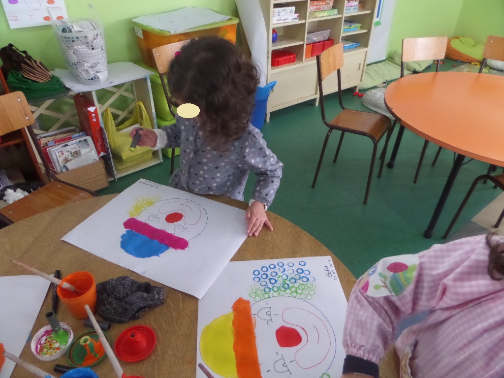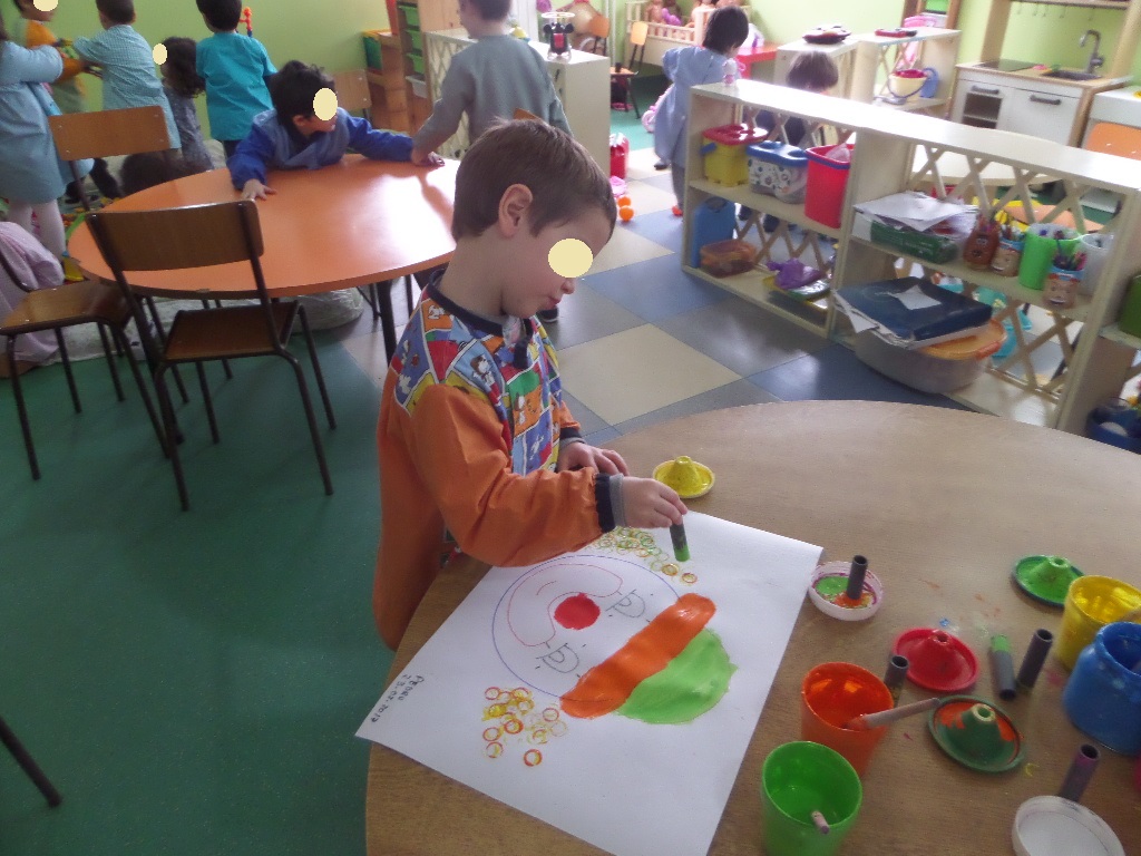 Na sala houve também oportunidade de explorarmos algumas técnicas de pintura (com cotonetes e com carimbos), para decorarmos a nossa sala para o Carnaval com uns palhacinhos e uns piratas coloridos.