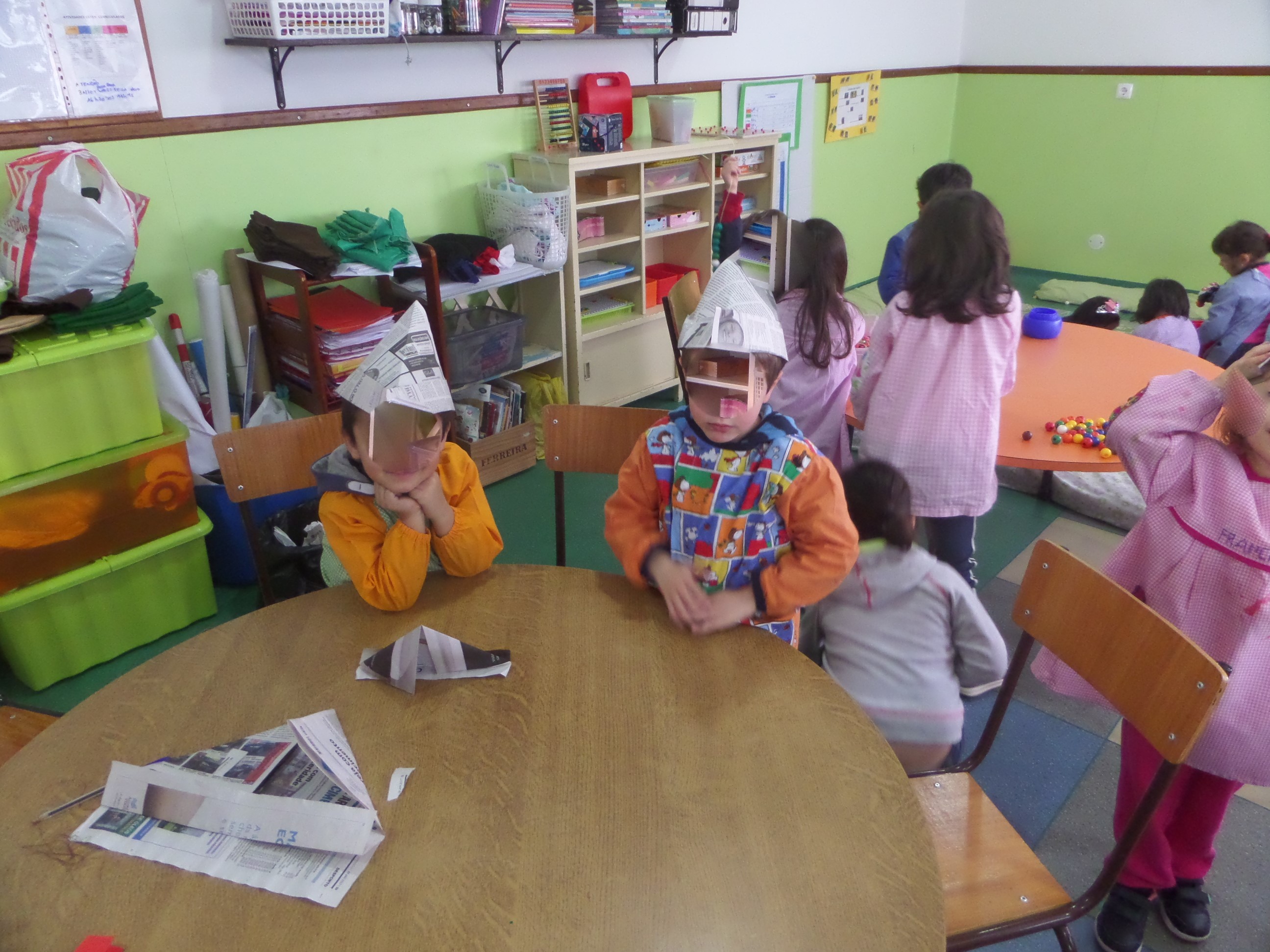 Lemos esta história e outras desta coleção e começámos por colorir a Sininho, o Peter Pan e por fazer os chapéus de Peter Pan com jornais e utilizámos a técnica da dobragem.