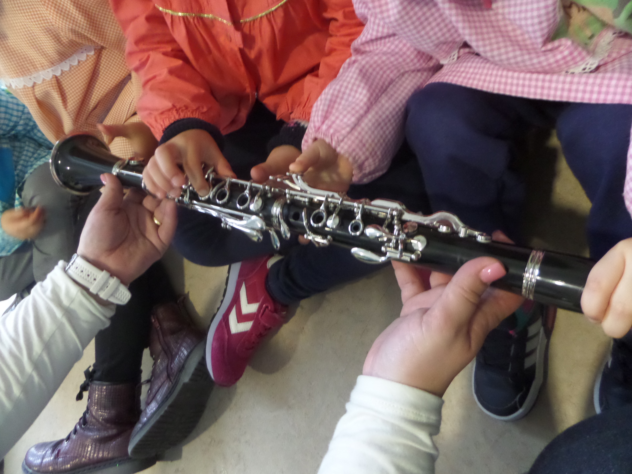 Fomos ao concerto de clarinete dinamizado pelo grupo que integra o projeto Música Amiga, aprendemos a distinguir sons agudos e sons graves, tocámos maracas, castanholas e outros instrumentos, foi bem divertido.