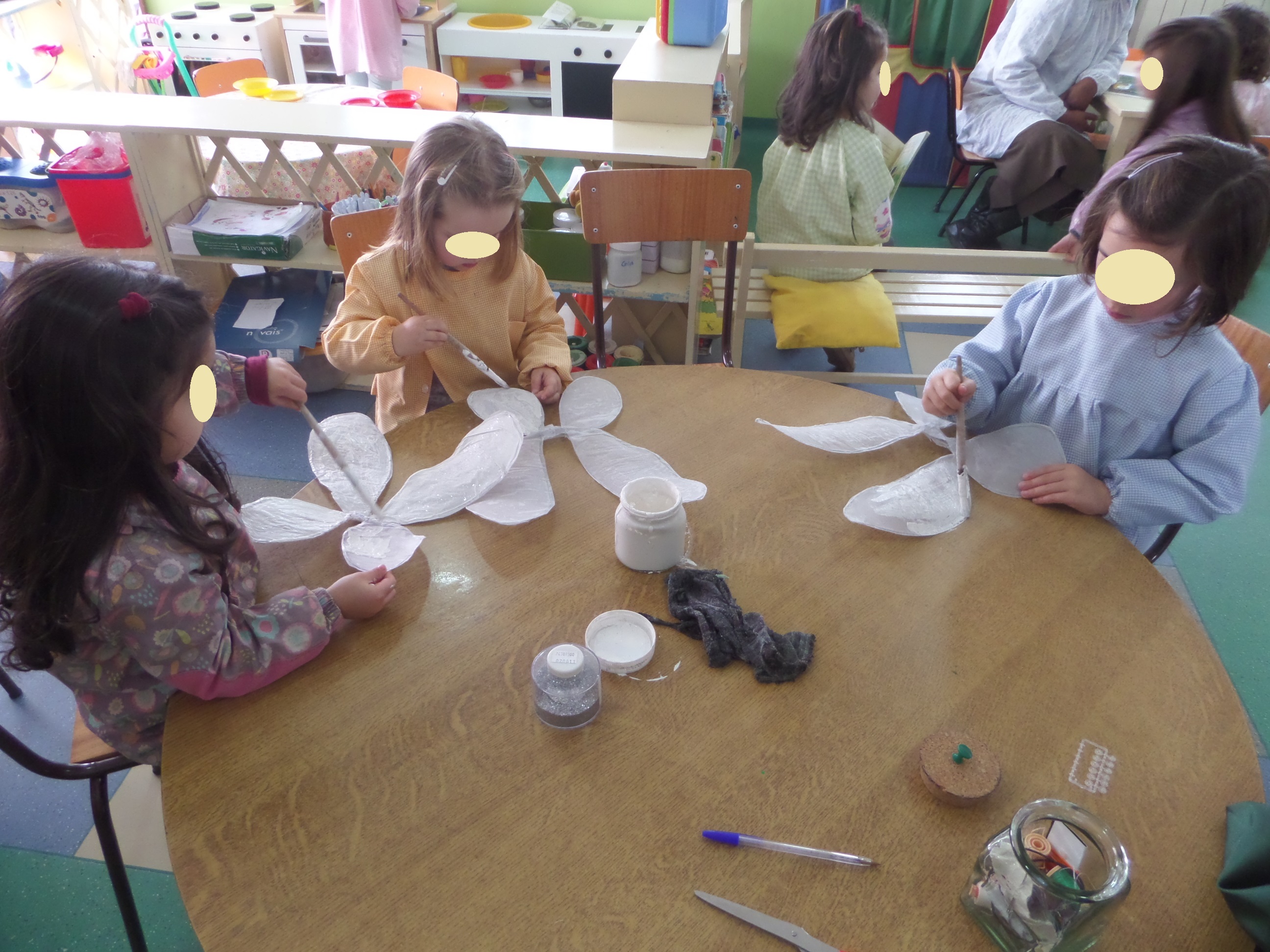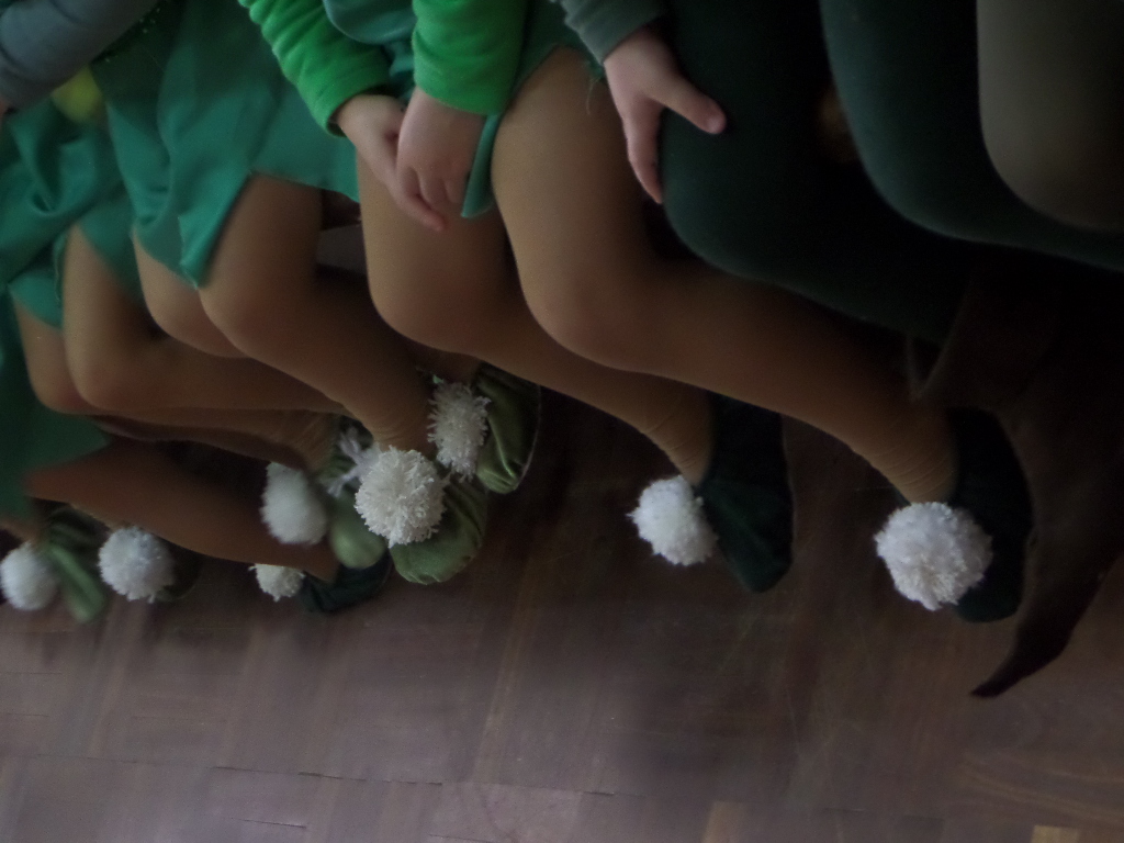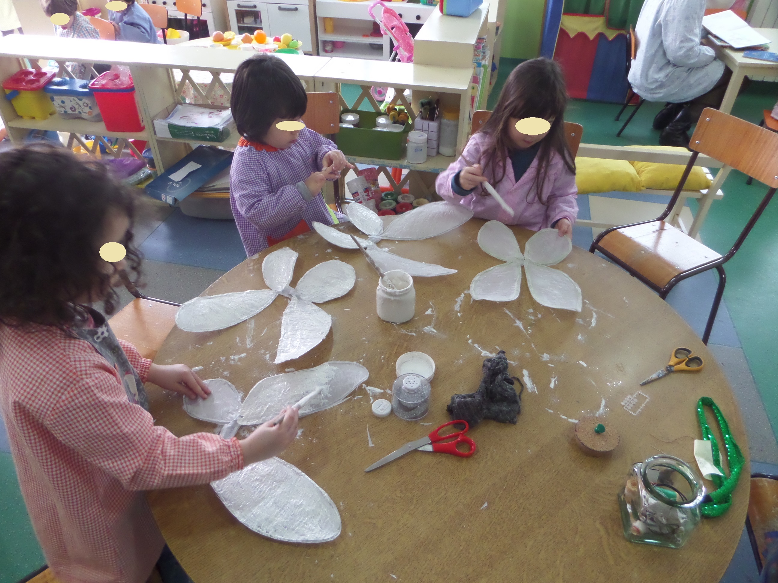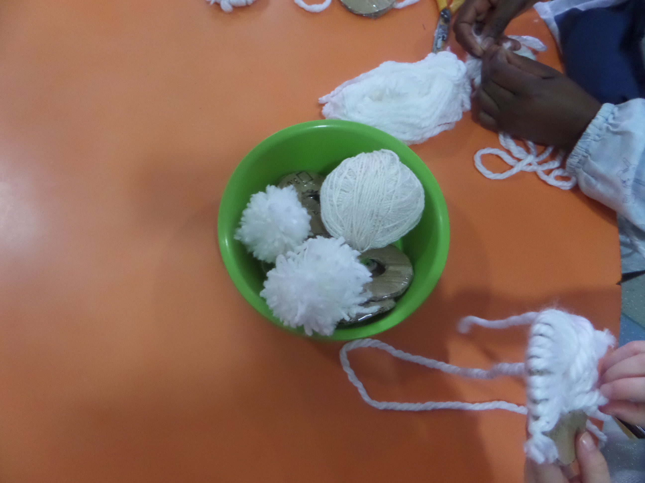 Demos início à construção dos nossos fatos e começámos por fazer os pompons para os sapatos da Sininho que a Coordenadora Conceição Sousa se disponibilizou a fazer.