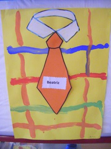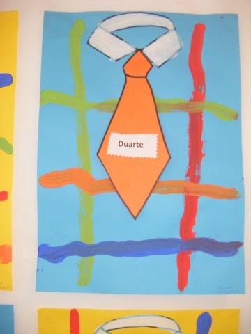 Para a sala pintámos uma camisa com uma gravata que tinha o nosso nome. Foi mais um miminho para eles. Embrulhámos a prenda num carro de papel onde pintámos com um rolo. Gostámos muito. Ficou muito giro!
