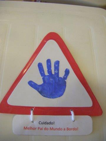Olá a todos! Como estão? Nós estamos cá outra vez para vos contar as nossas novidades do mês de Março. Foi um mês em que vivemos outra data importante- o dia do Pai, em que fizemos uma placa de aviso para o carro com a impressão da nossa mãe e a frase- cuidado-melhor Pai do mundo a bordo e também um telemóvel em cartolina com a nossa foto e o desenho do nosso papá. Espero que tenham gostamos os nossos papás. Fizemos a prenda com muito carinho.
